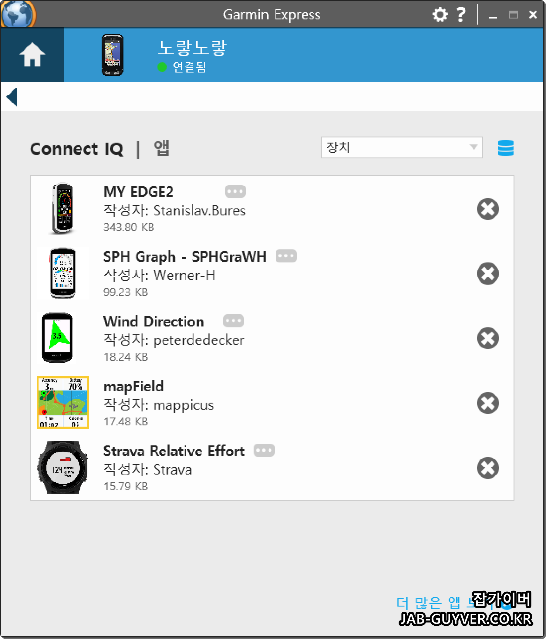 원하는 Connect IQ 앱을 설치하거나 삭제합니다.
