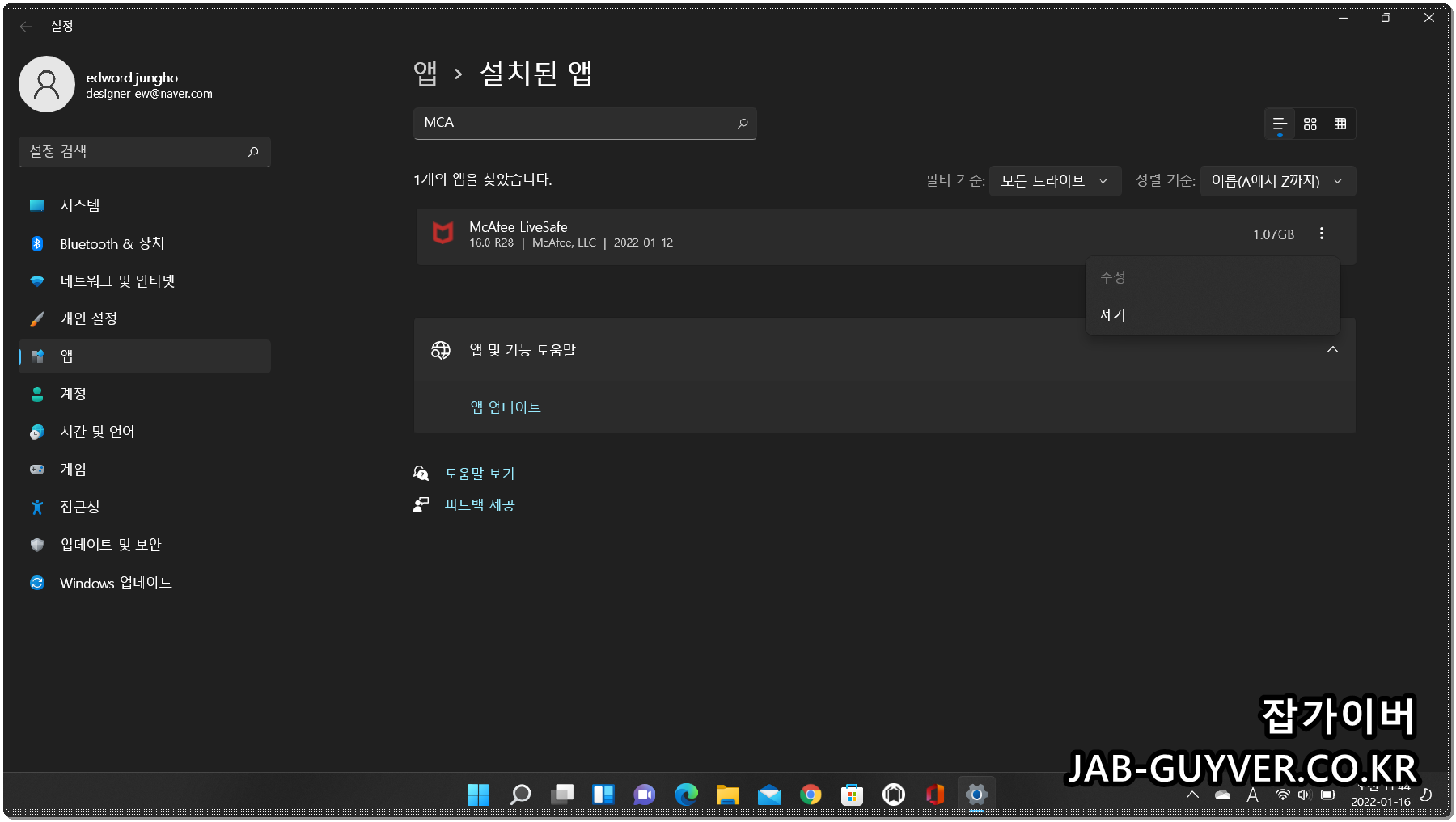 윈도우11 기준 프로그램 추가 / 제거로 들어갑니다.