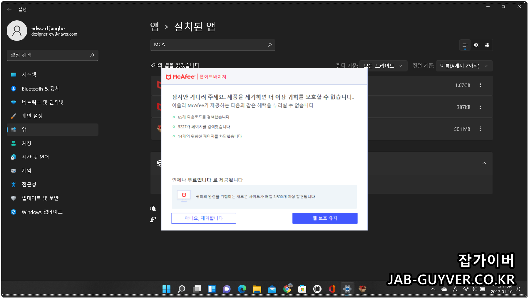 3개의 MacAfee 삭제해야합니다.