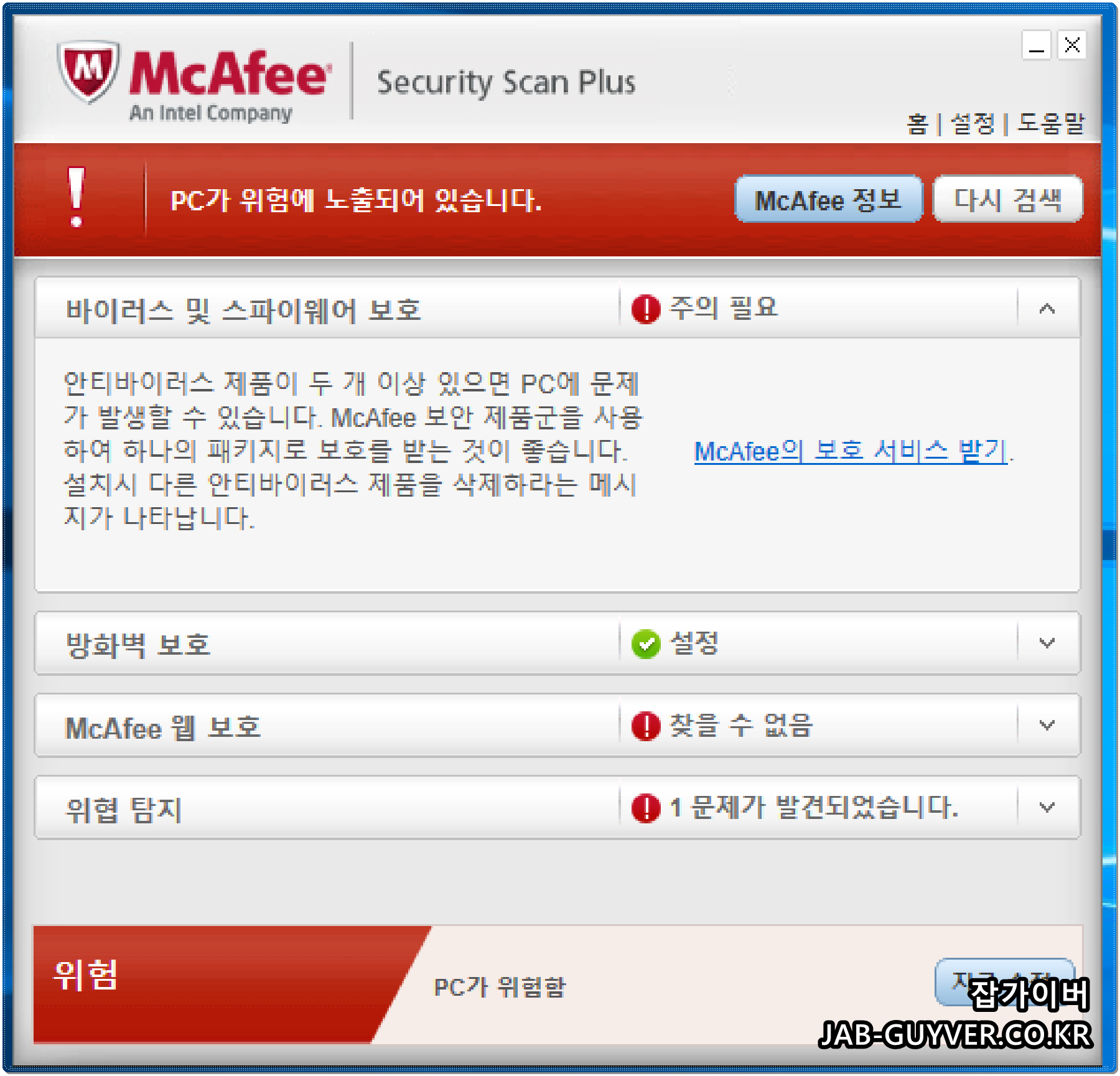 3가지의 MacAfee 볼 수 있습니다.