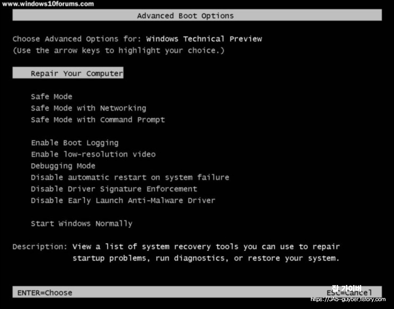 하지만 진짜 트로이목마 및 랜섬웨어 등 바이러스에 감염되었다면 윈도우10 안전모드 부팅해서 복구를 진행하며 트로이목마가 의심되는 경우 아래 6가지 사항에 포함되는지 체크합니다.