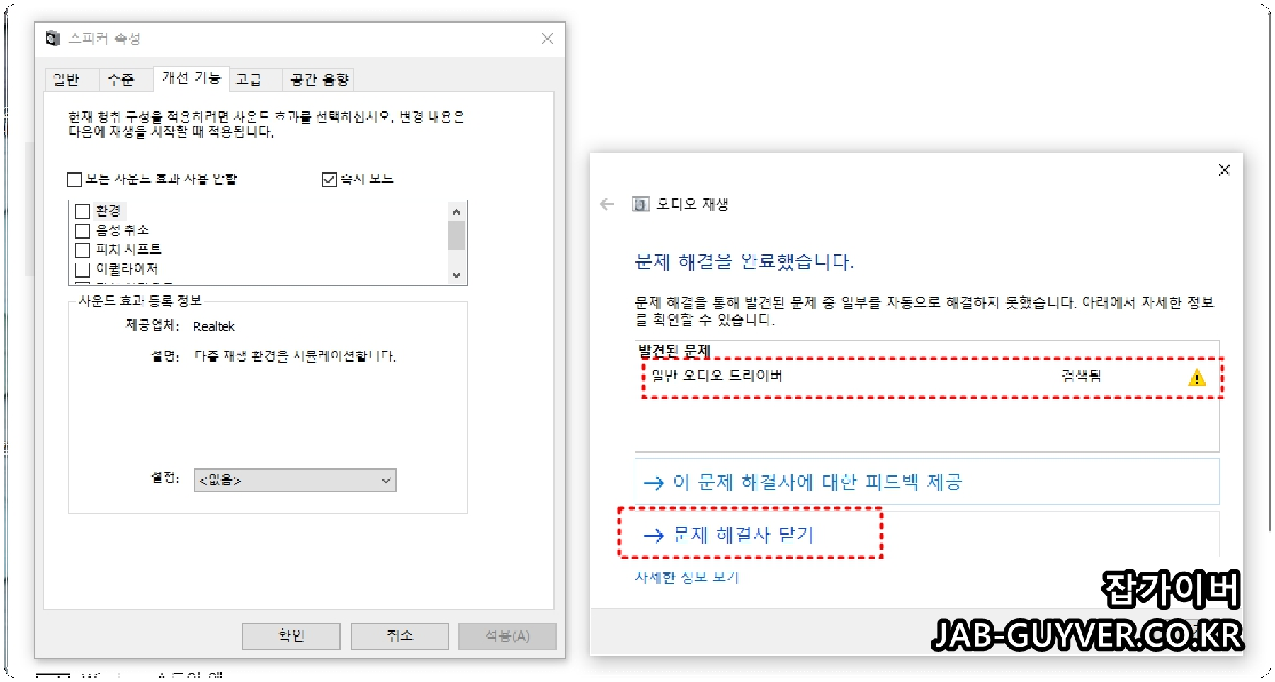이를 통해 현재 노트북에서 소리가 나지 않는 원인을 찾아 문제를 자동으로 해결합니다.