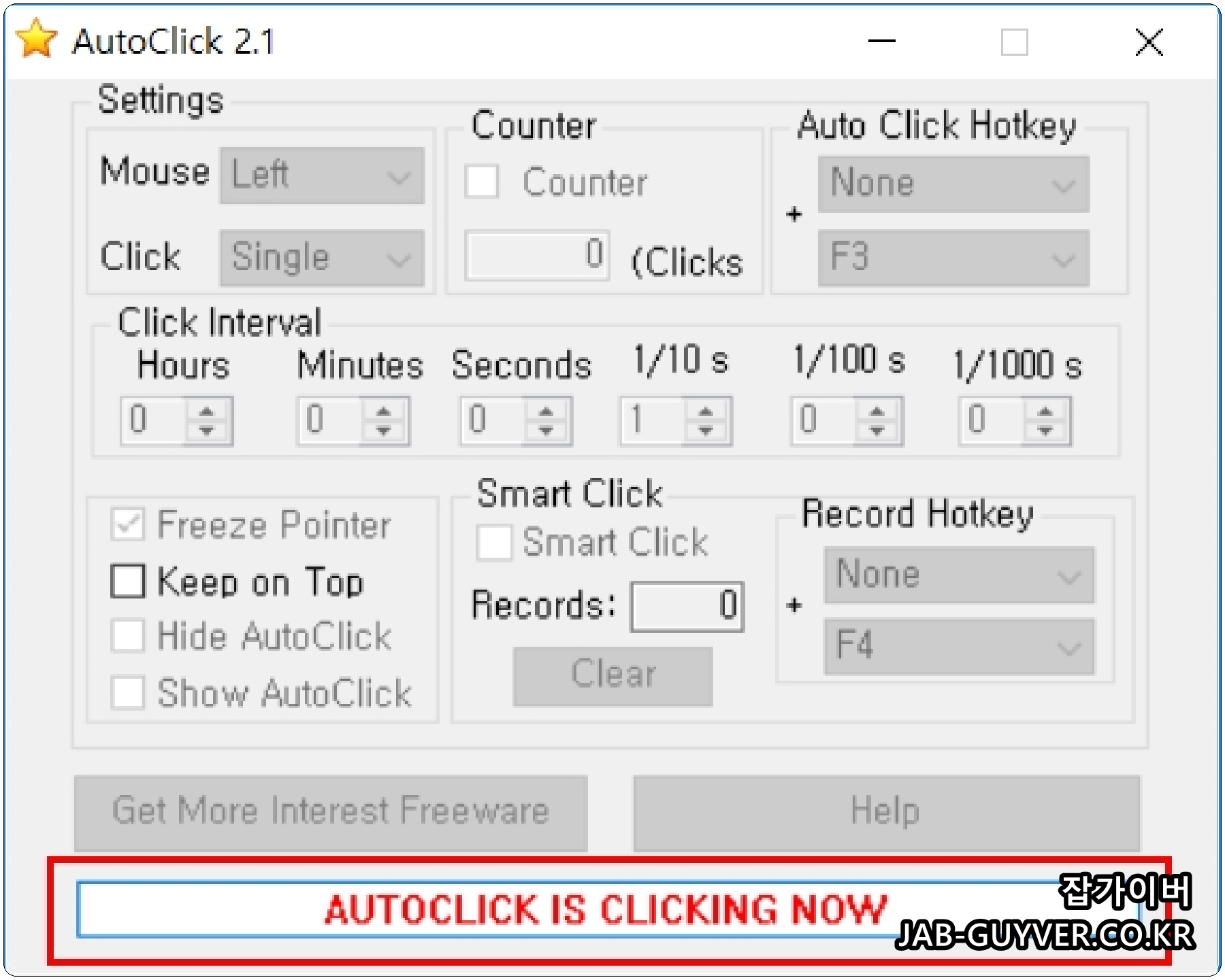 마우스 매크로 프로그램인 오토클릭은 무료로 배포되는 프로그램으로 위 파일을 다운로드 받아 실행하면 됩니다.