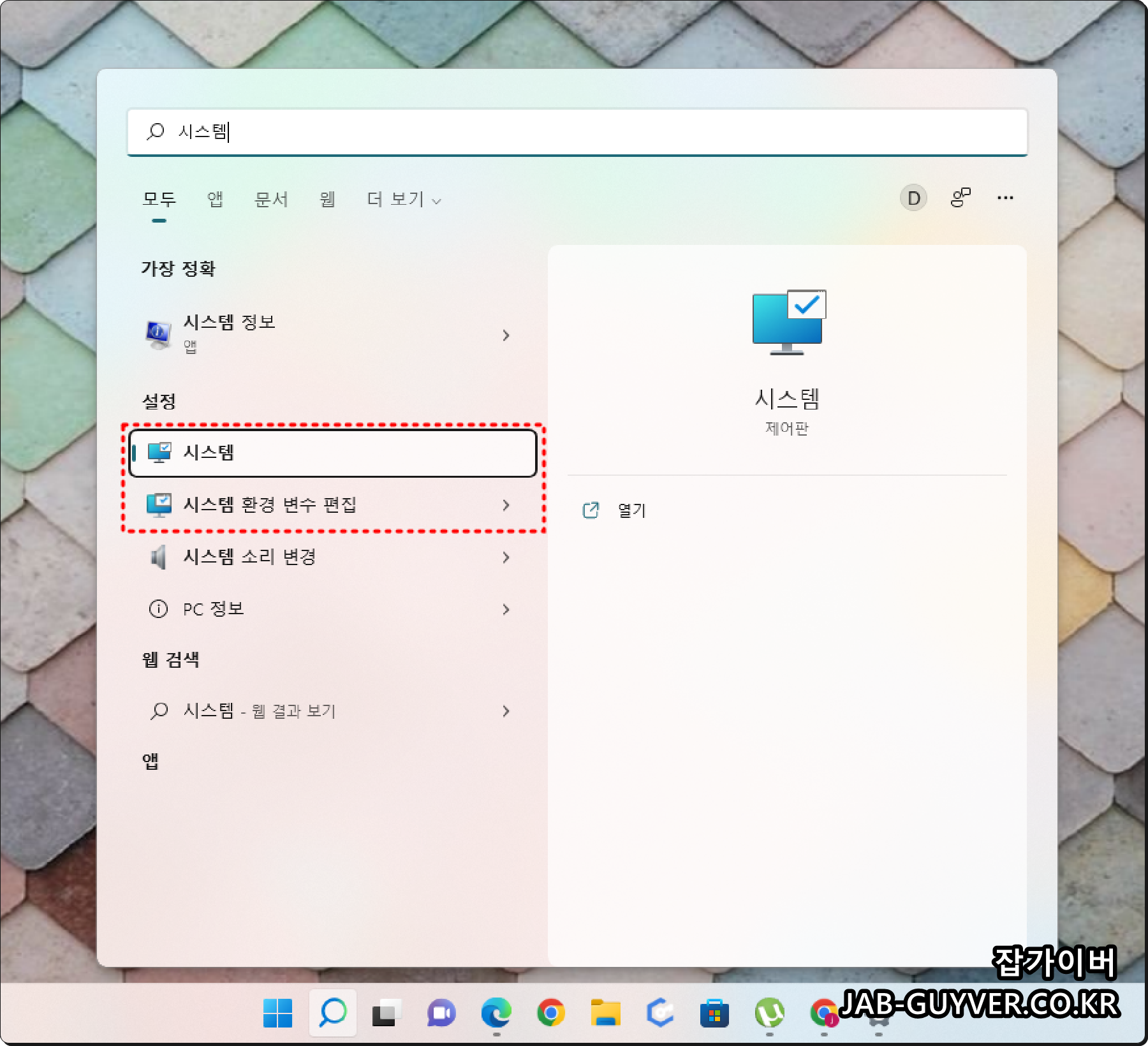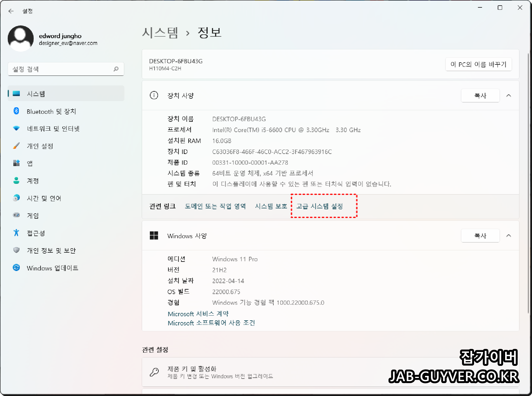 - 윈도우11 기준 시스템으로 들어갑니다.