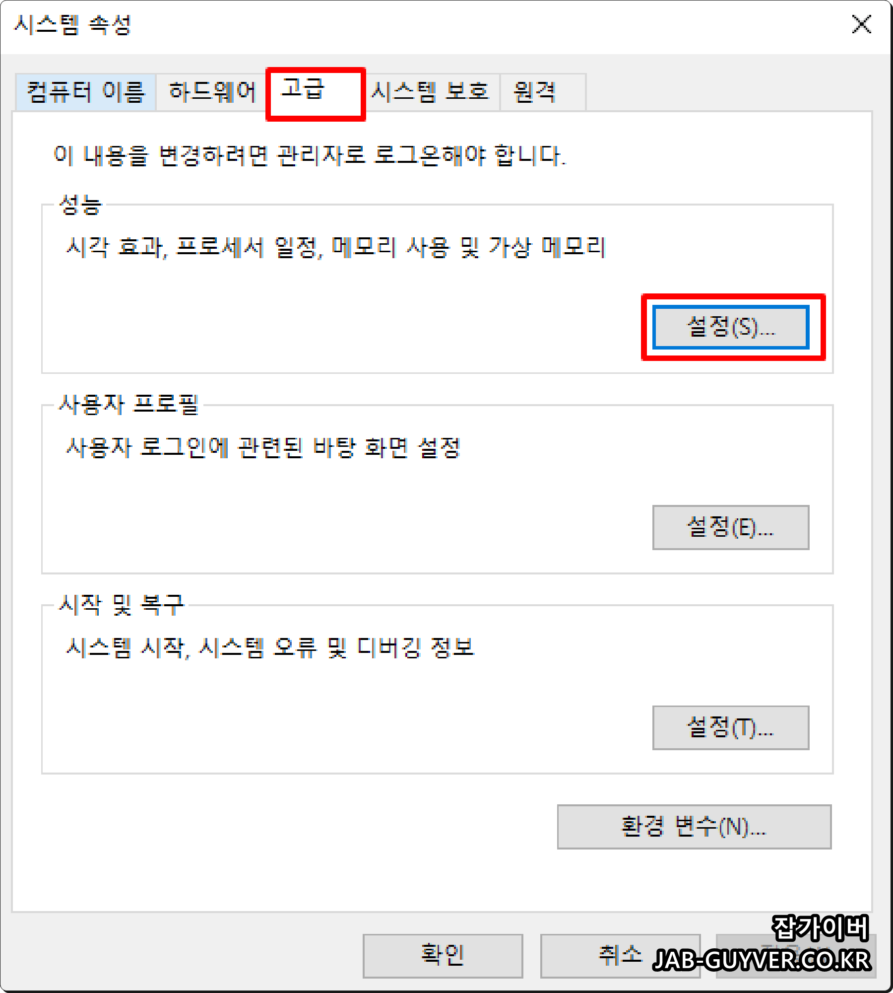- "고급 시스템 설정"에 들어가세요.