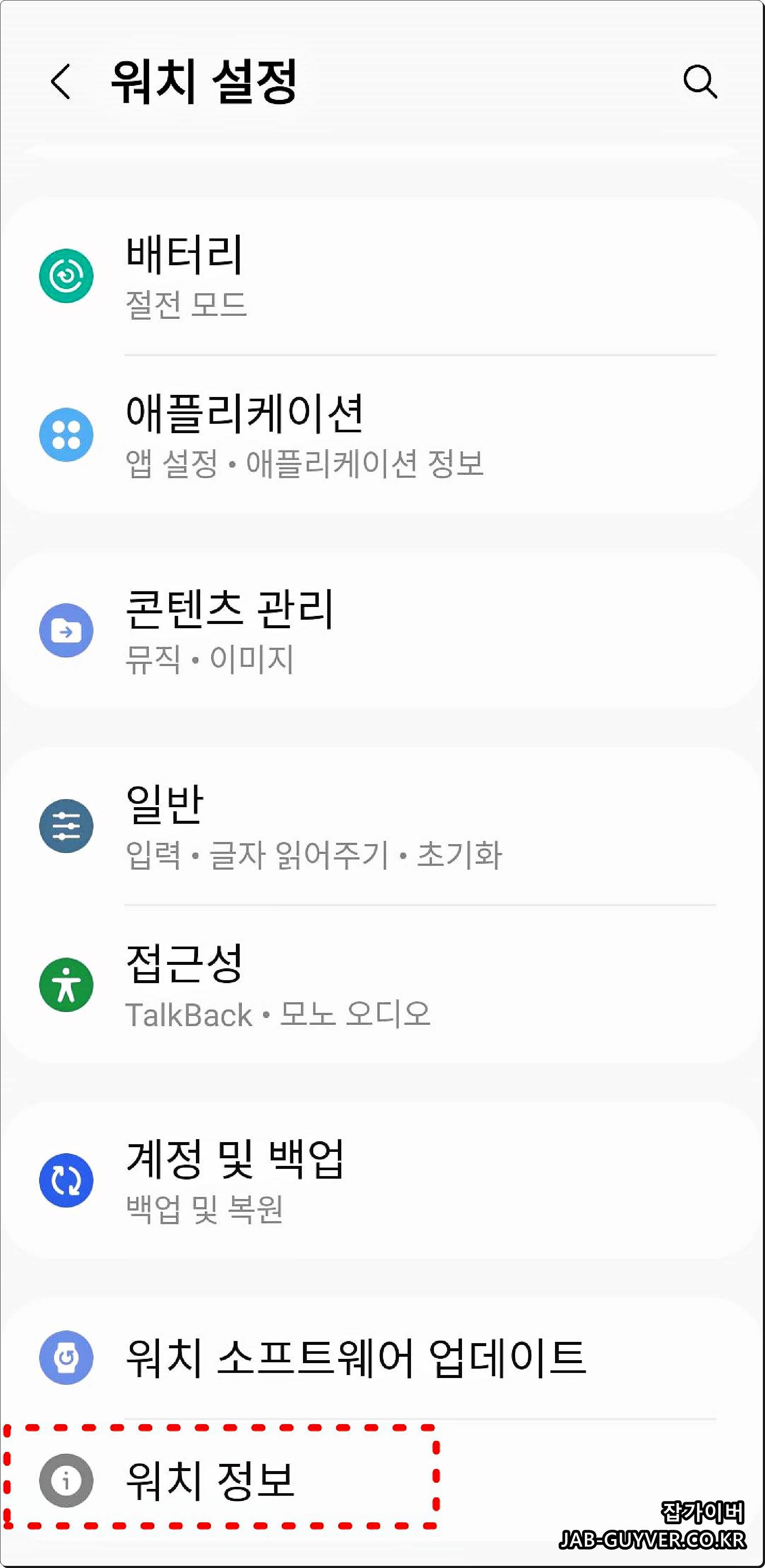 갤럭시워치4 시리얼번호 및 펌웨어 버전 용량 확인