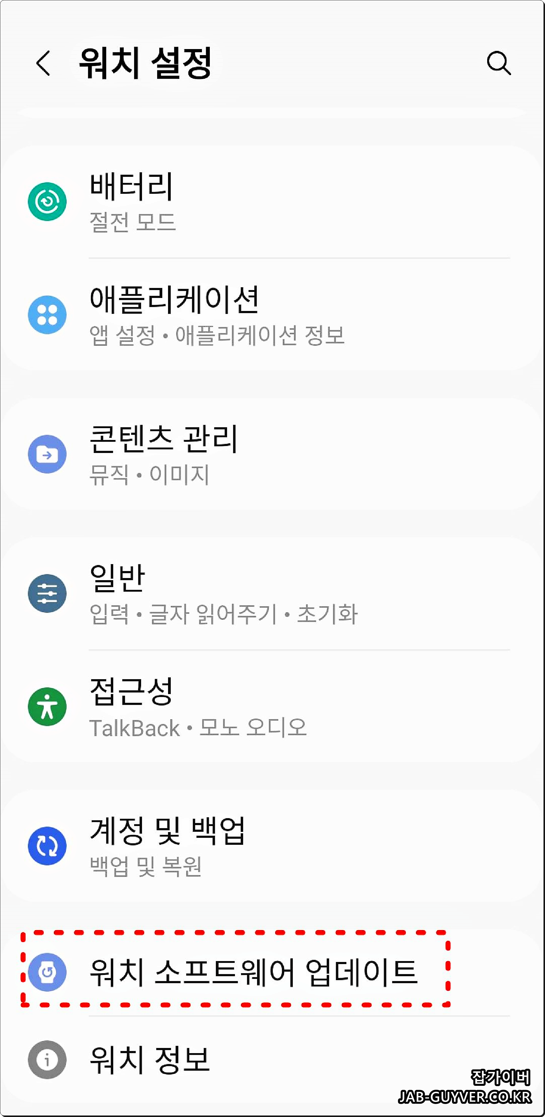 갤럭시워치4 업데이트 설치 및 펌웨어 버전용량 확인