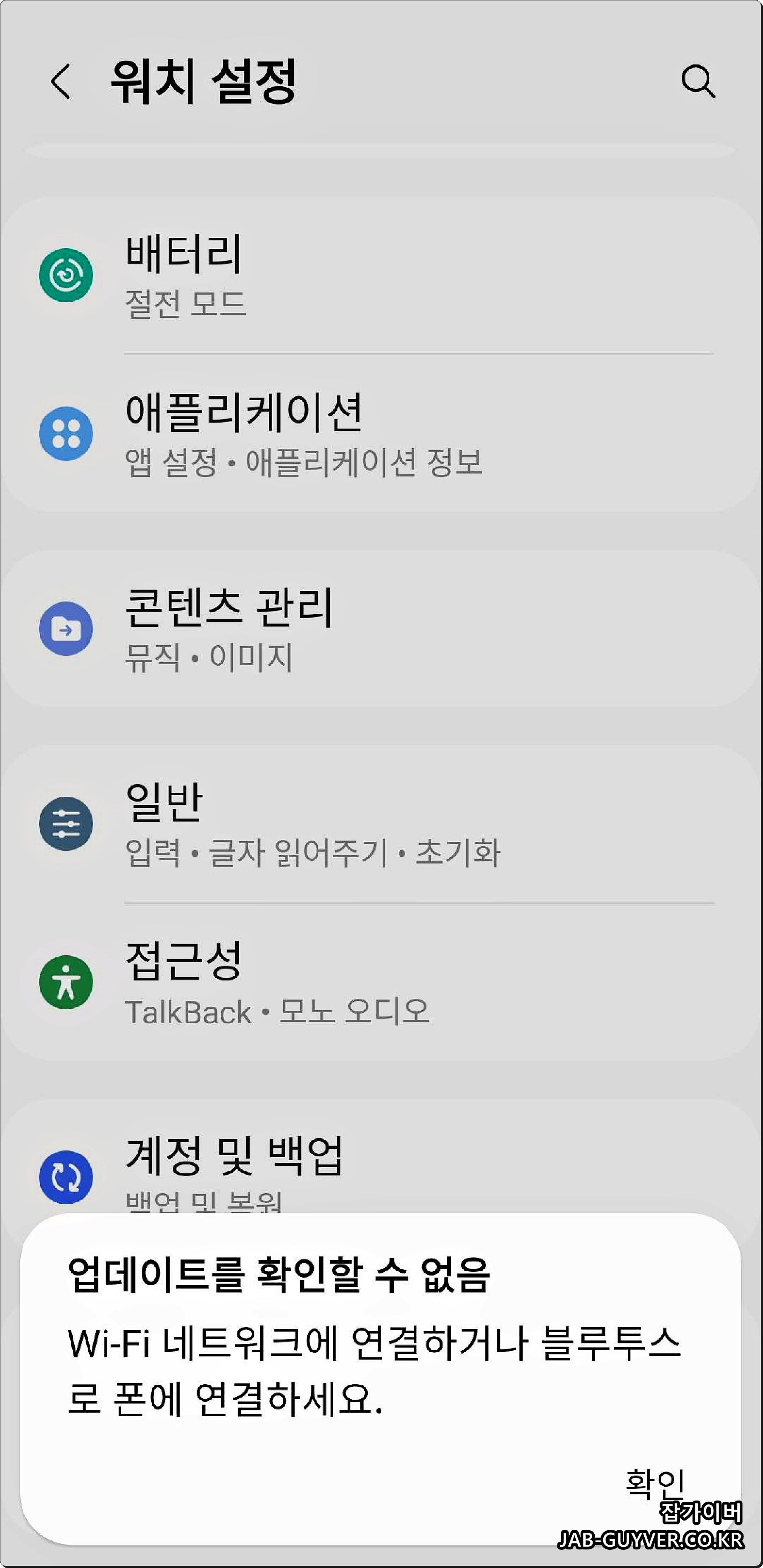 갤럭시워치 업데이트를 확인하기 위해서는 모바일데이터에서는 실행 불가능합니다.