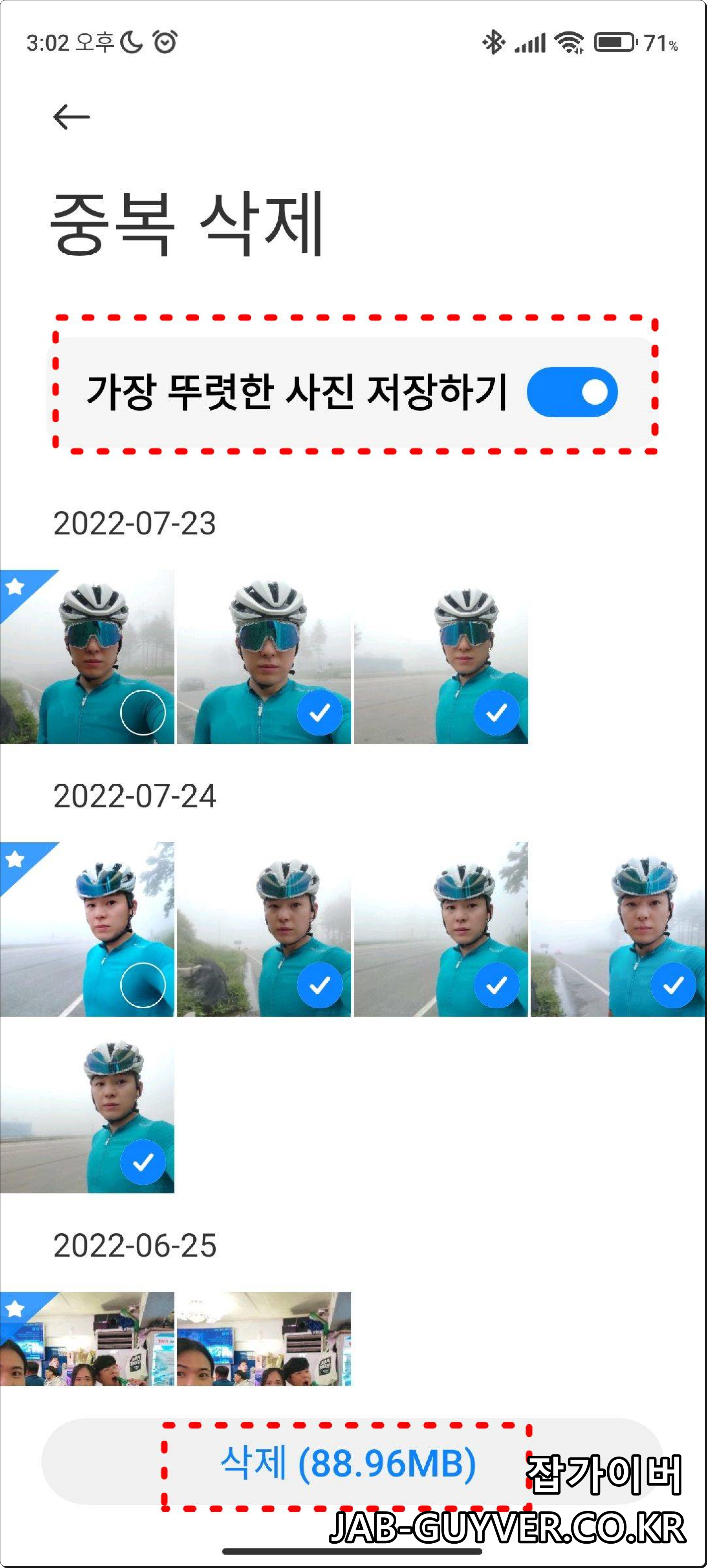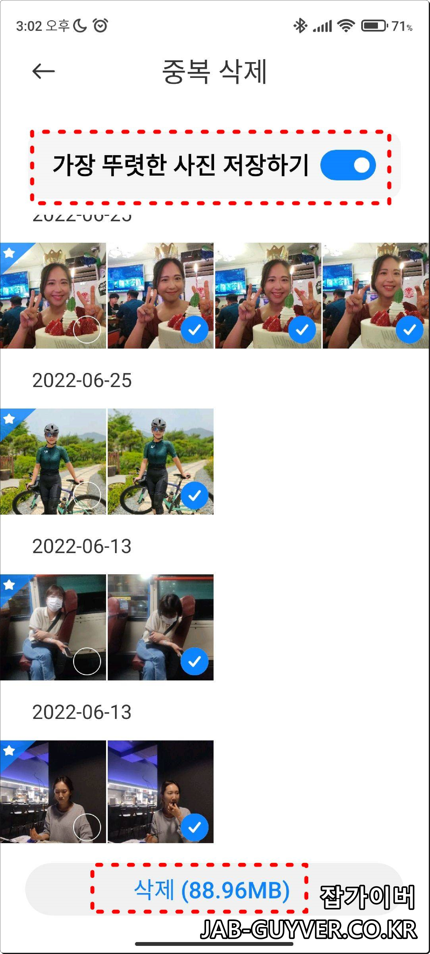 특히 중복된 사진 및 연사로 촬영된 사진 중에서 가장 뚜렷하게 촬영된 사진 1장만 자동으로 체크하고 나머지 사진을 모두 제거합니다.
