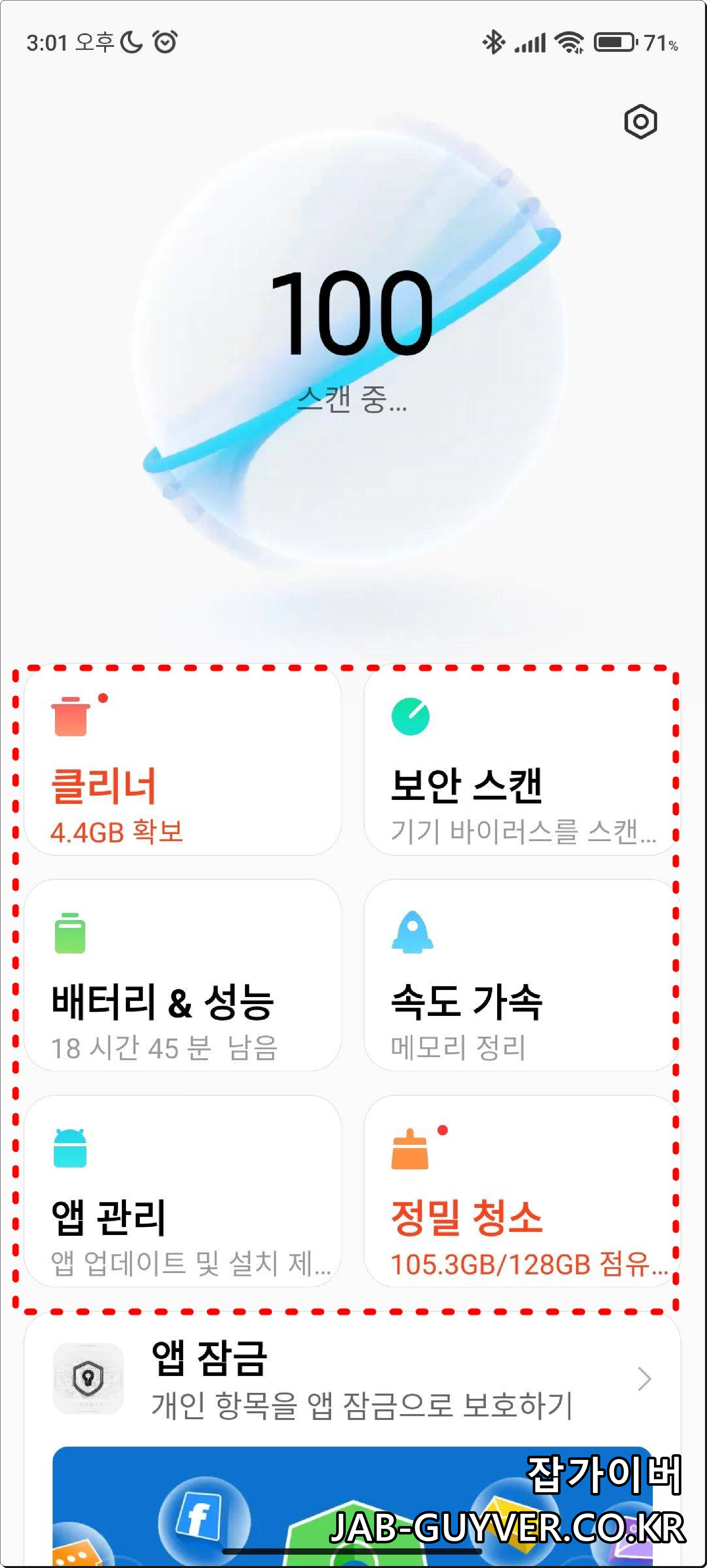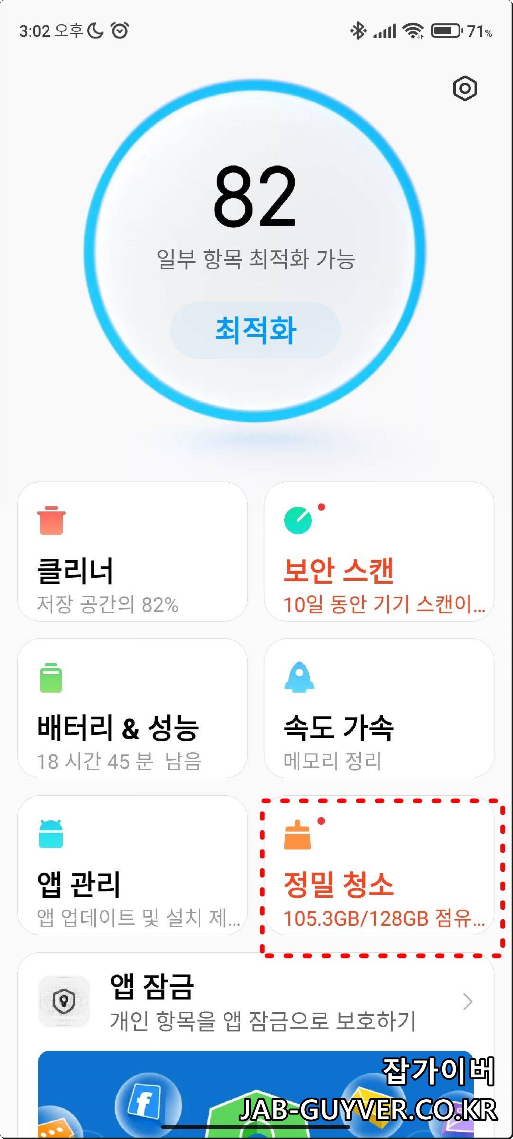 샤오미 Miui 핸드폰의 보안앱을 실행하면 6가지 기능을 사용해 최적화가 됩니다.