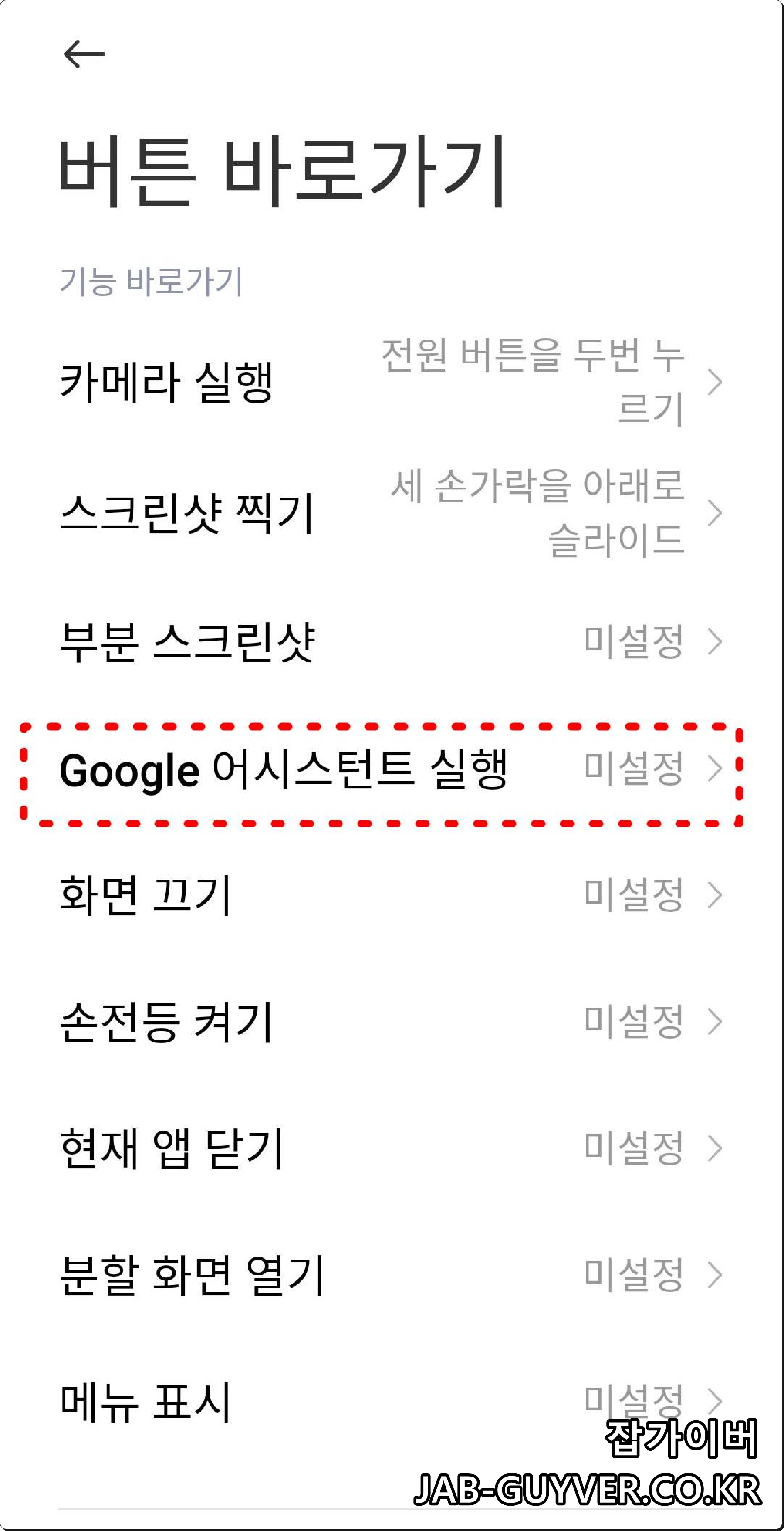 Miui 버튼 바로가기에서 구글 어시스턴트 단축키 끄기