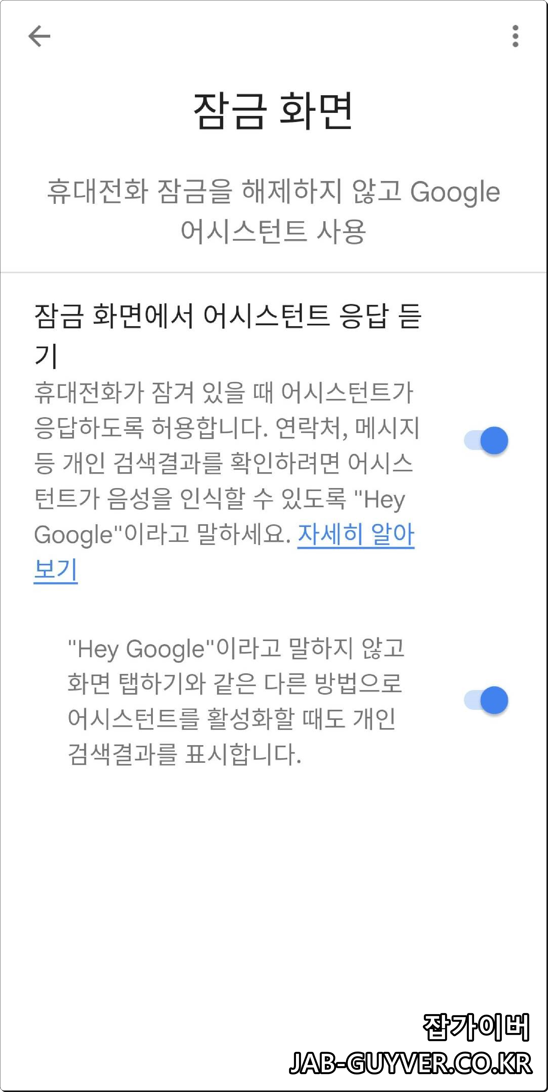 여기를 꺼두면 휴대전화가 잠겨 있을 때는 “헤이 구글”에 응답하지 않고, 화면을 깨운 뒤에만 반응하게 됩니다.
