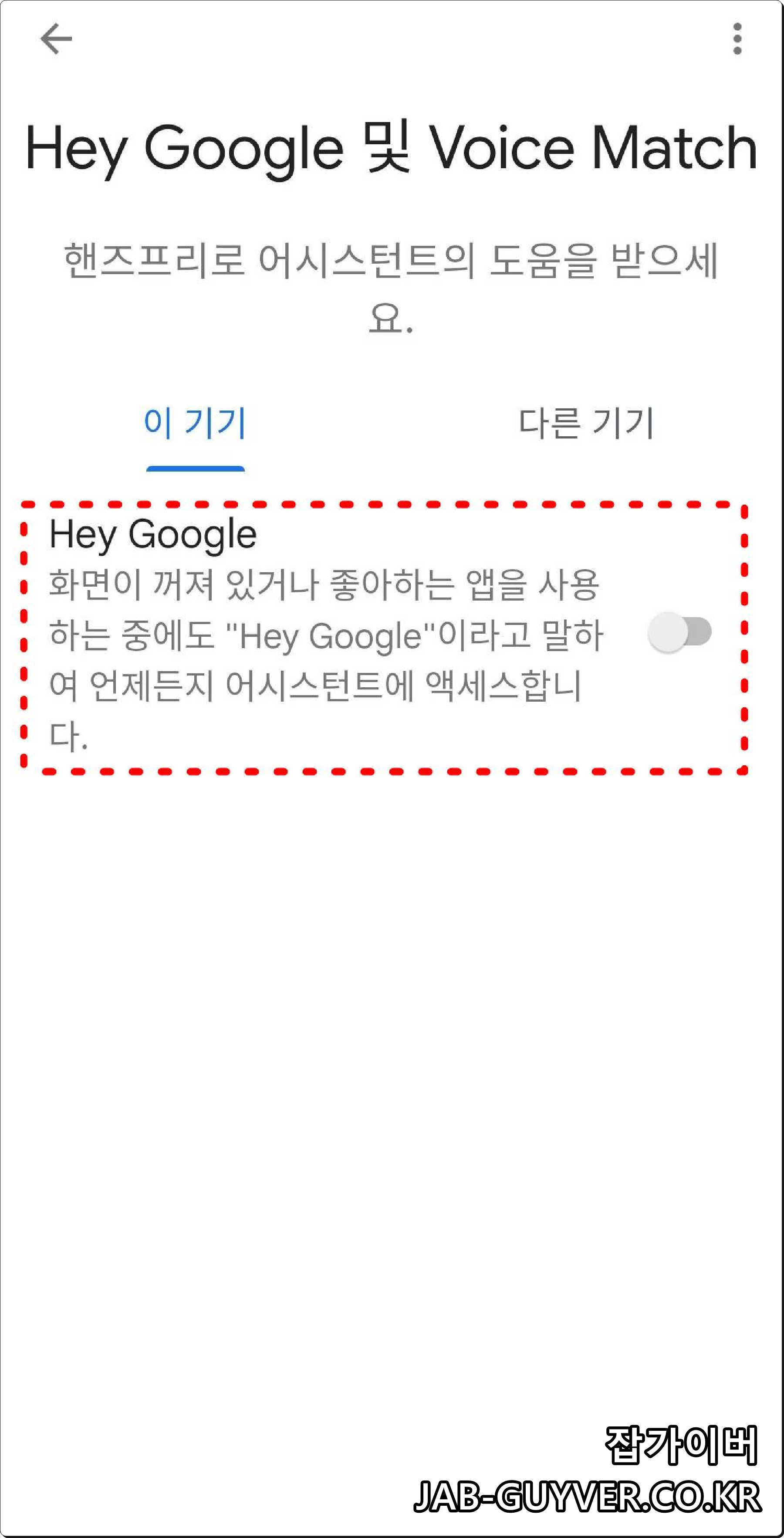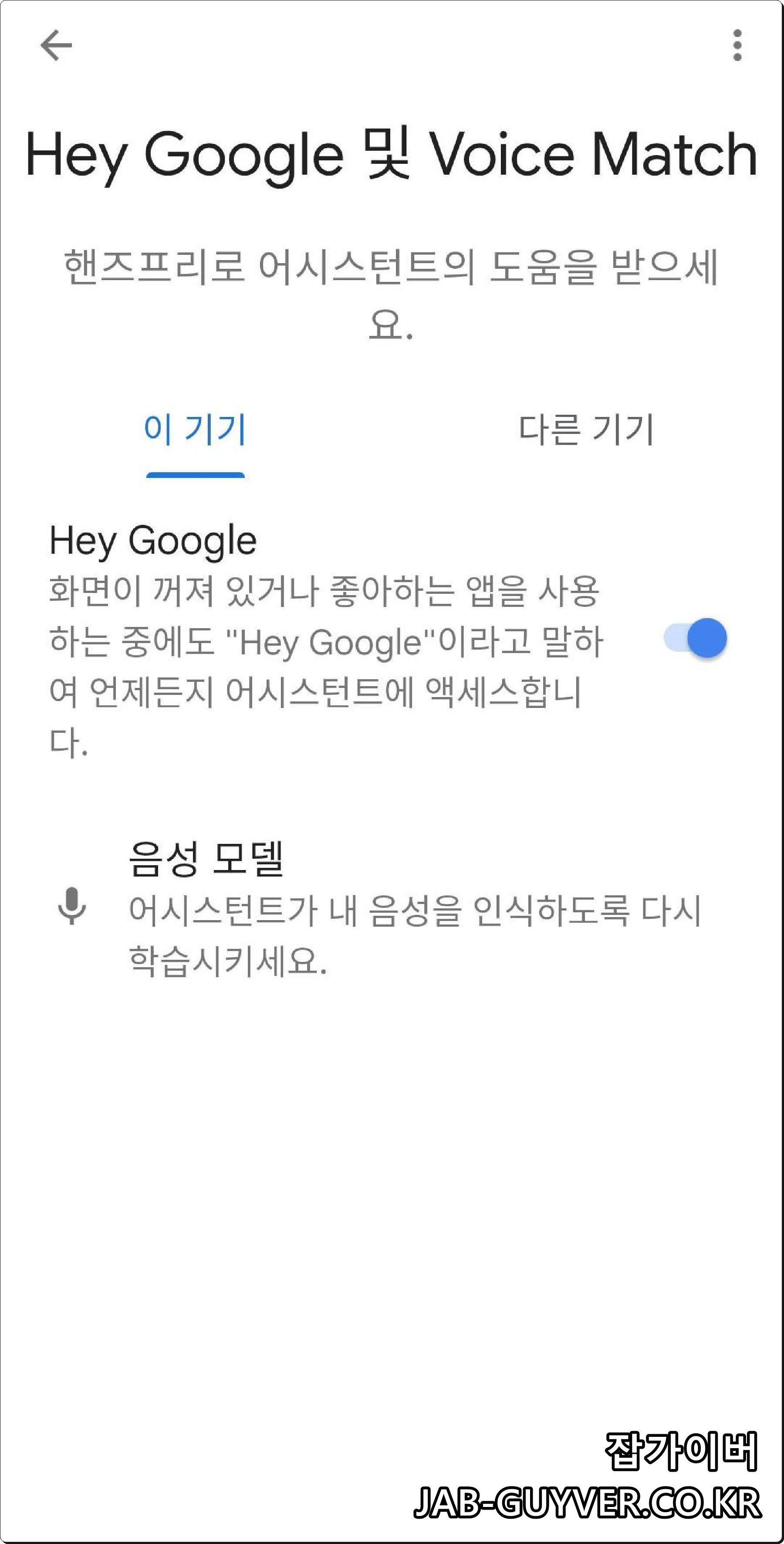 헤이 구글 · 보이스 매치 음성인식 끄기