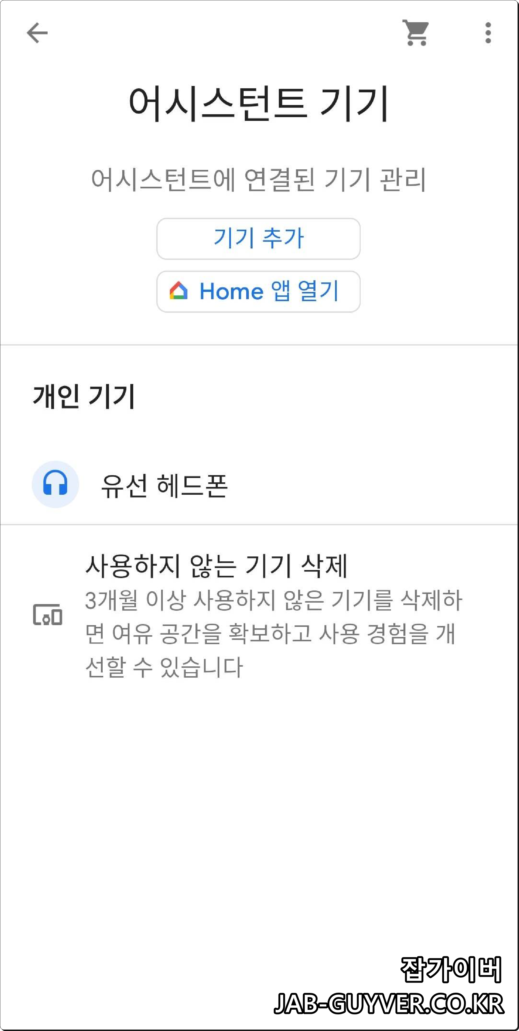여기를 통해 블루투스 이어폰, 스피커, 스마트홈 기기 등을 연결해두면, “헤이 구글 집 안 불 꺼줘” 같은 명령도 편하게 쓸 수 있습니다.