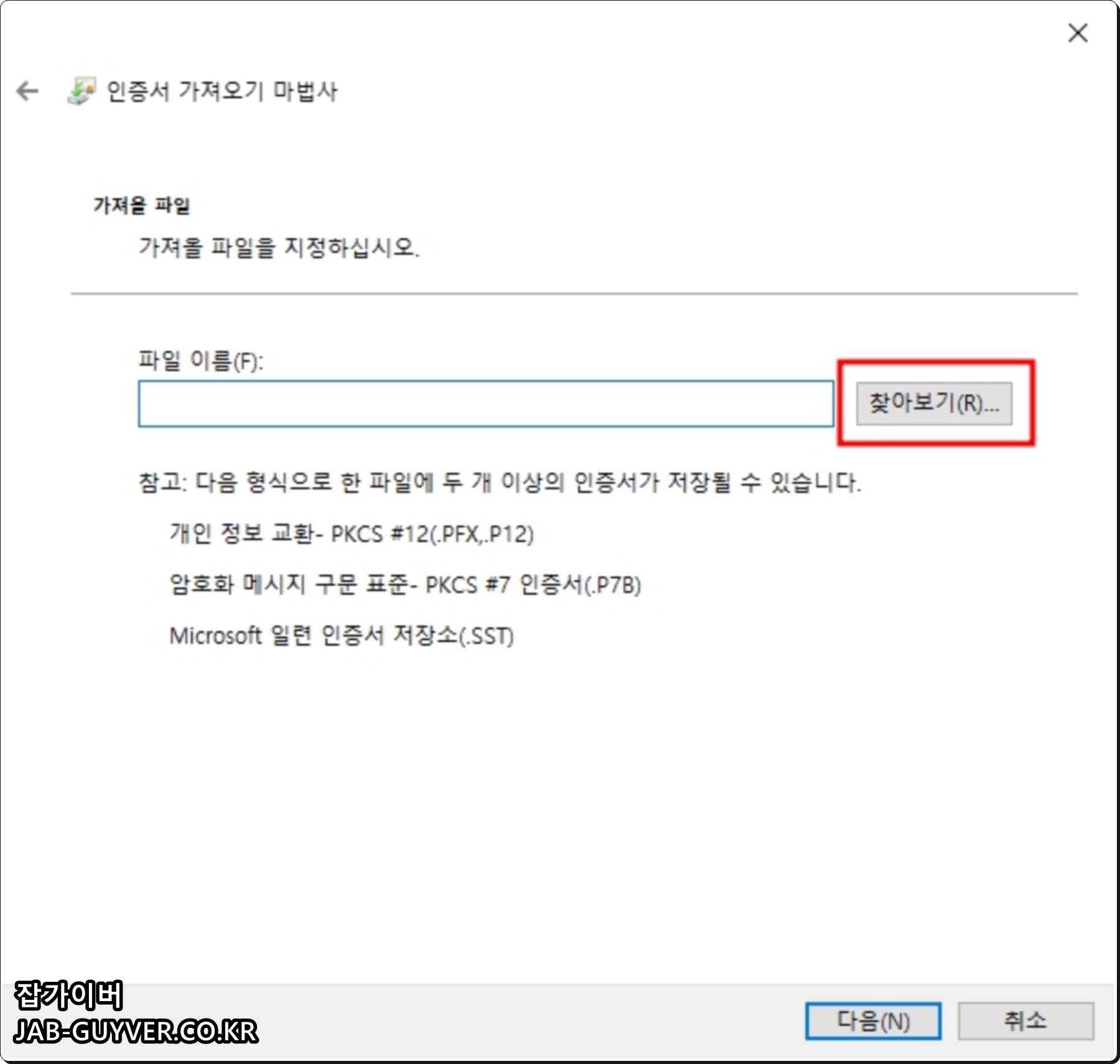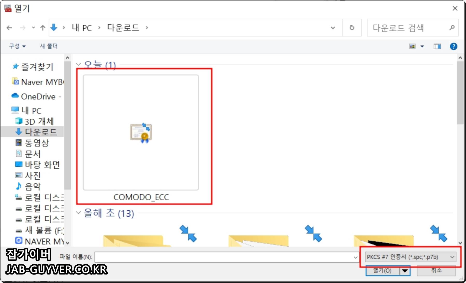 찾아보기를 통해 아까 다운로드 한 코모도 인증서를 선택합니다.