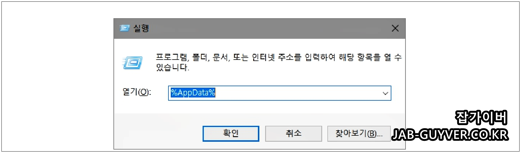 윈도우 + R을 눌러 아래 명령어를 입력해서 로밍폴더를 실행합니다.