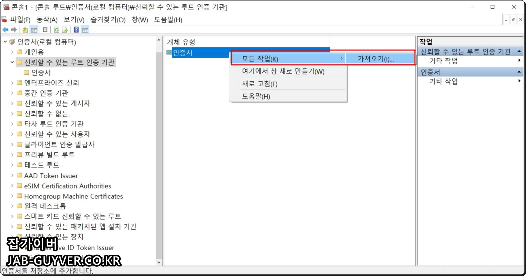 신뢰할 수 있는 루트인증기간 인증서 추가