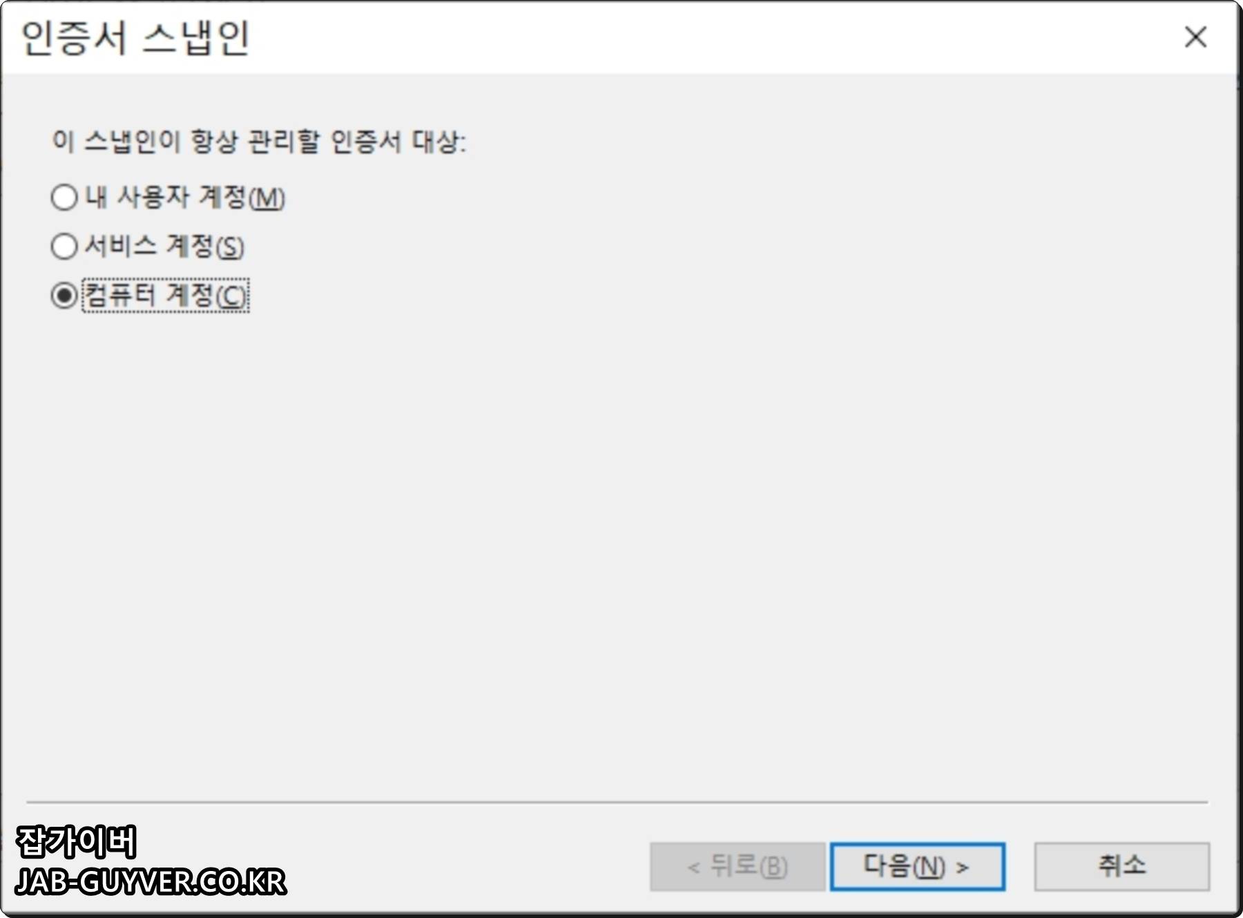 그럼 시간이 조금 지나면 인증서 스냅인이 실행됩니다.