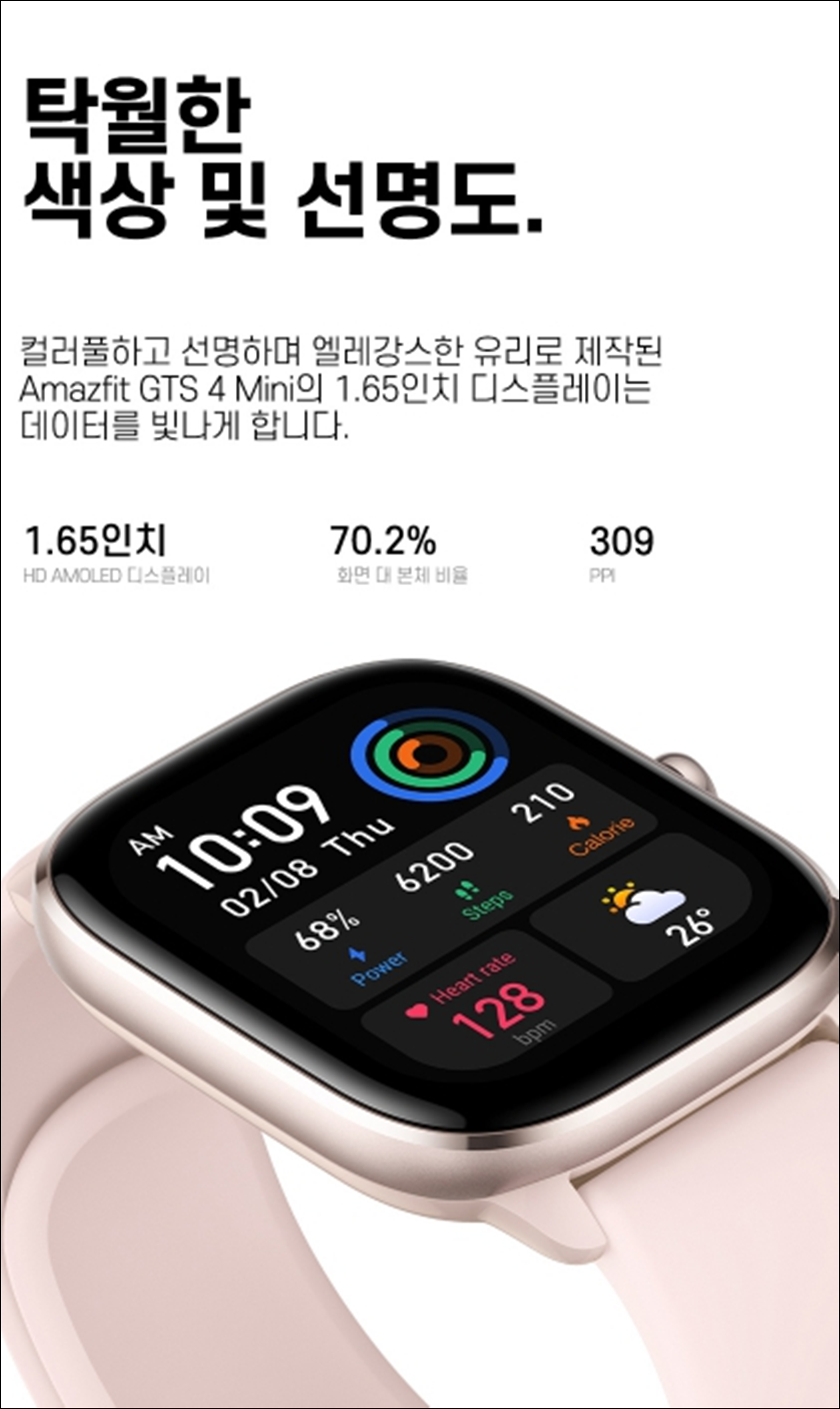 기본적으로 기존 GTS2 미니 모델보다 더욱 커지고 더욱 밝아진 디스플레이는 물론 해상도가 소폭 상승했습니다.