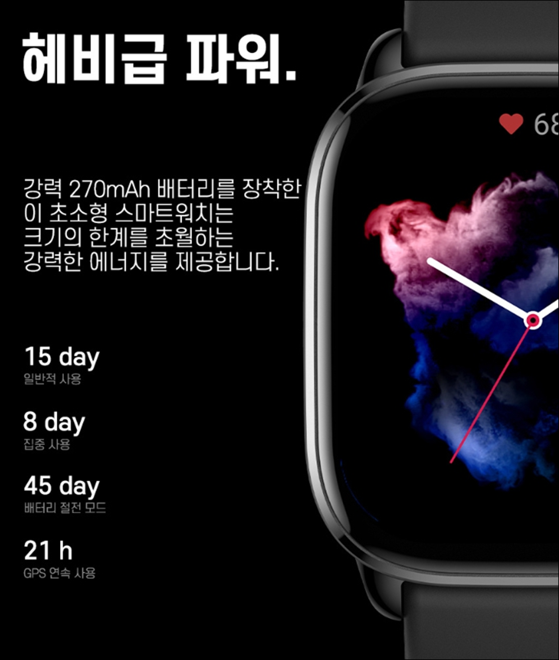 여기서 가장 큰 차이점은 GPS 위성이 2개에서 5개로 증가했음에도 불구하고 배터리 용량이 220 -> 270으로 대폭 증가하여 오히려 배터리 수명은 증가했다는 점입니다.