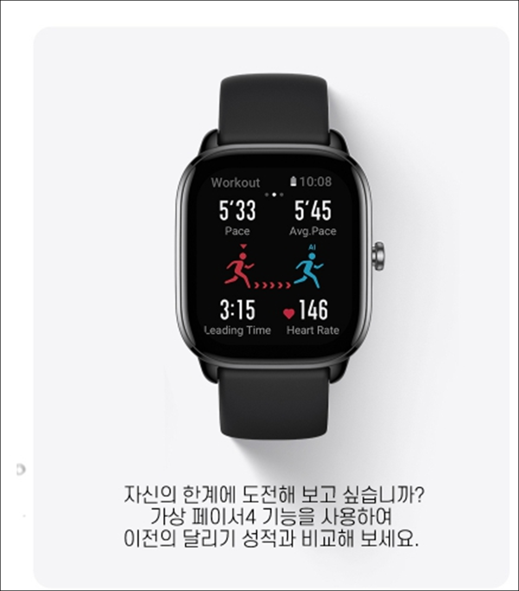 기본적으로 최근 출시된 갤럭시워치와 비교해서 헬스측정 및 스트레스 측정, 자동스포츠모드 식별 및 Zepp 어플코칭을 통해 갤럭시 웨어러블이나 가민 커넥트앱과 같이 앱 코칭을 지원하기 때문에 보다 체계적인 훈련을 따라할 수 있습니다.