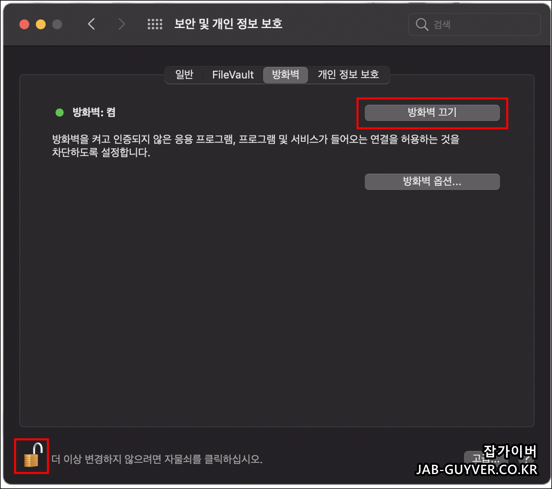 MacOS 방화벽 개인정보 보호