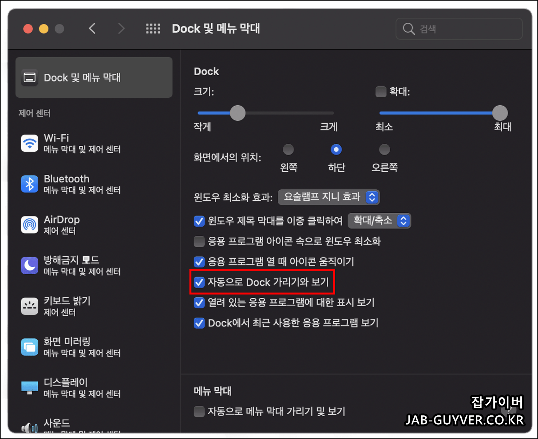 맥북 독 Dock 숨기기