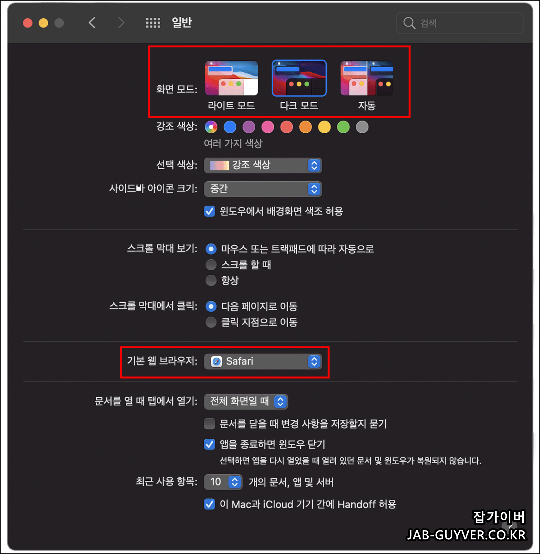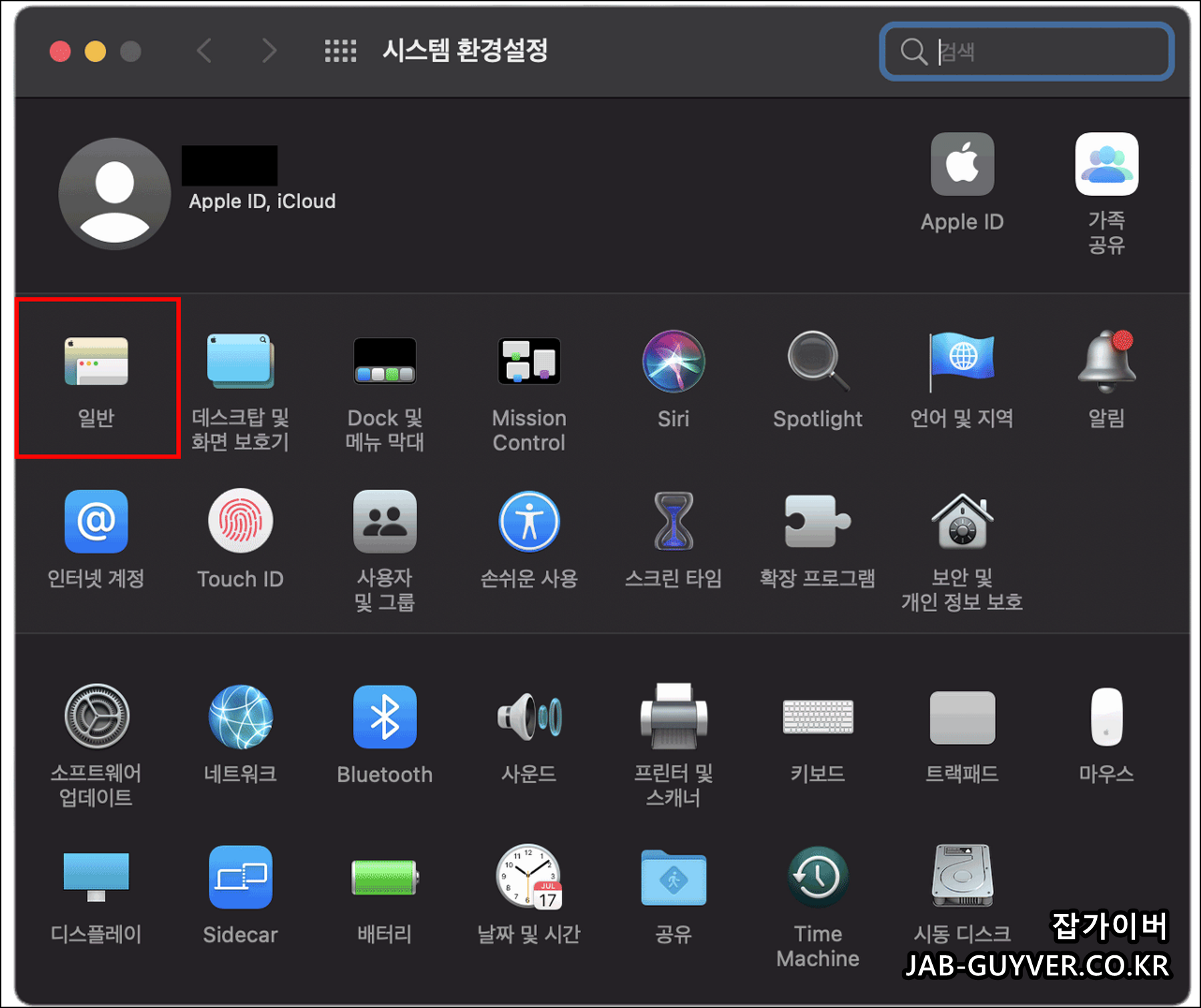시스템 환경설정 -> 일반탭으로 이동합니다.