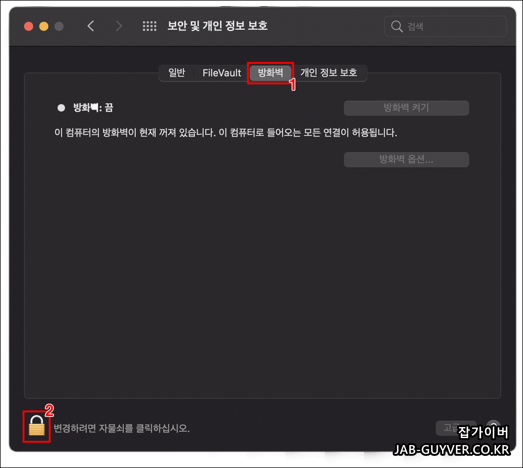 MacOS 방화벽 개인정보 보호