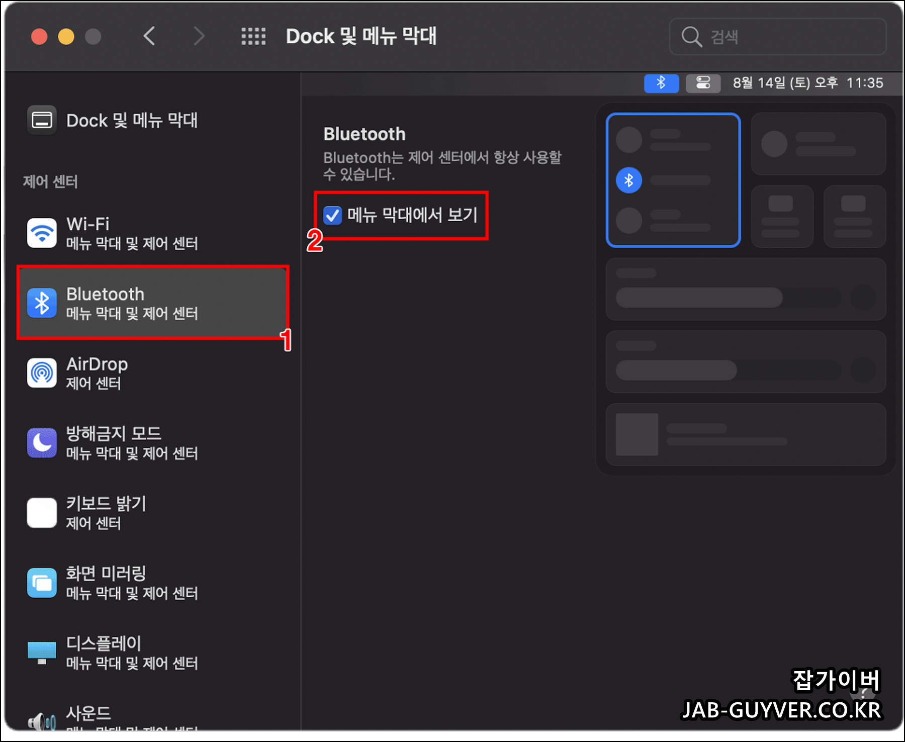 맥북을 사용하면서 블루투스 연결 및 스피커, 배터리 잔량등을 표시하는 방법입니다.
