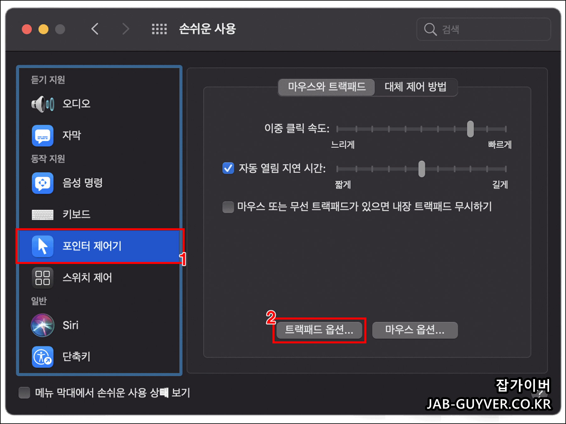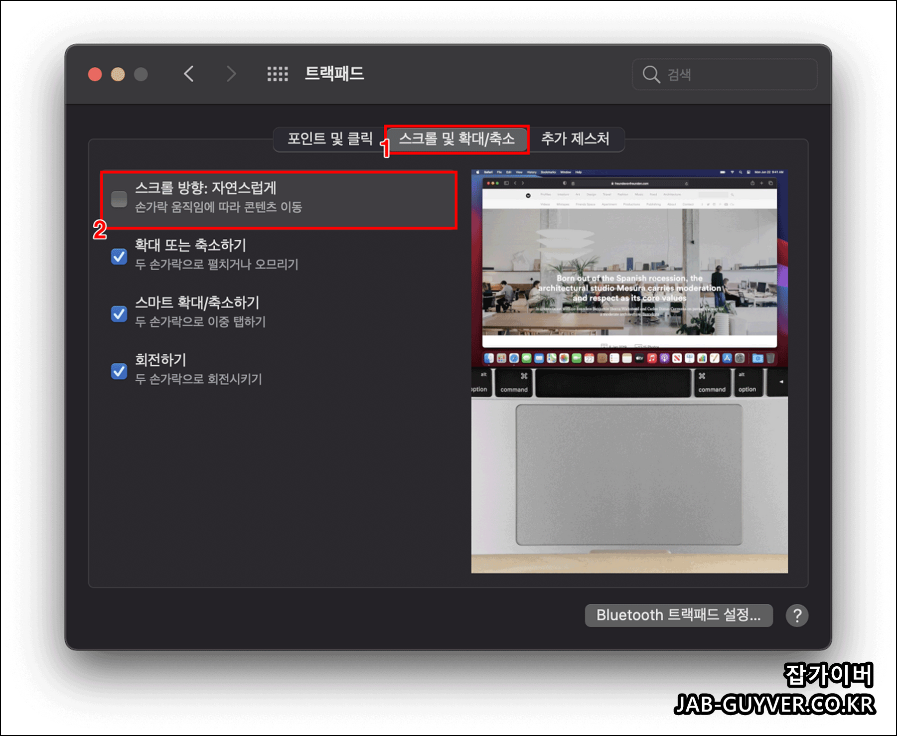 트랙패드 스크롤을 설정하는 방법입니다.