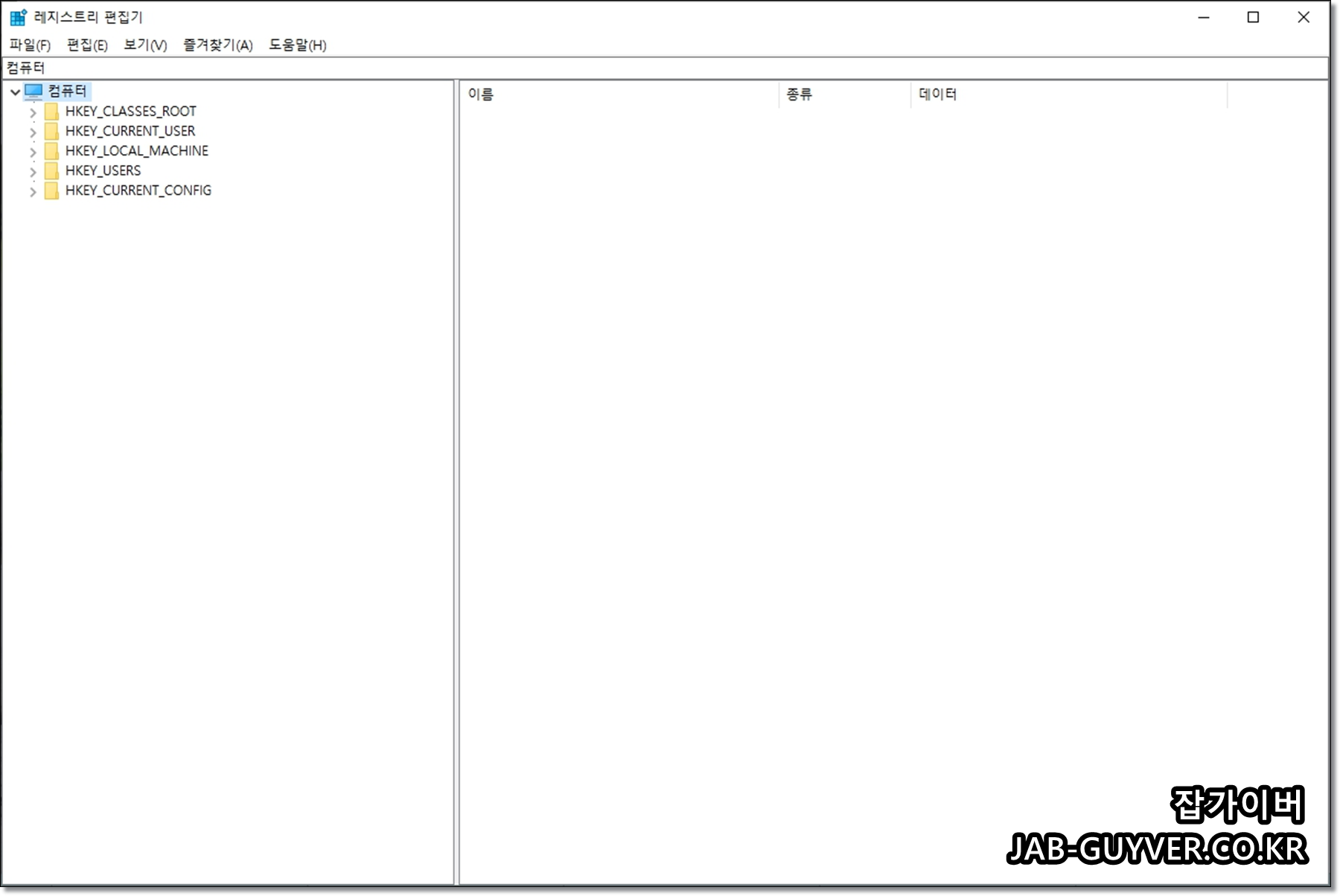 그리고 만들어진 기본값 키값 이름을 수정을 눌러 값 데이터(v)에 아래 값을 추가합니다.