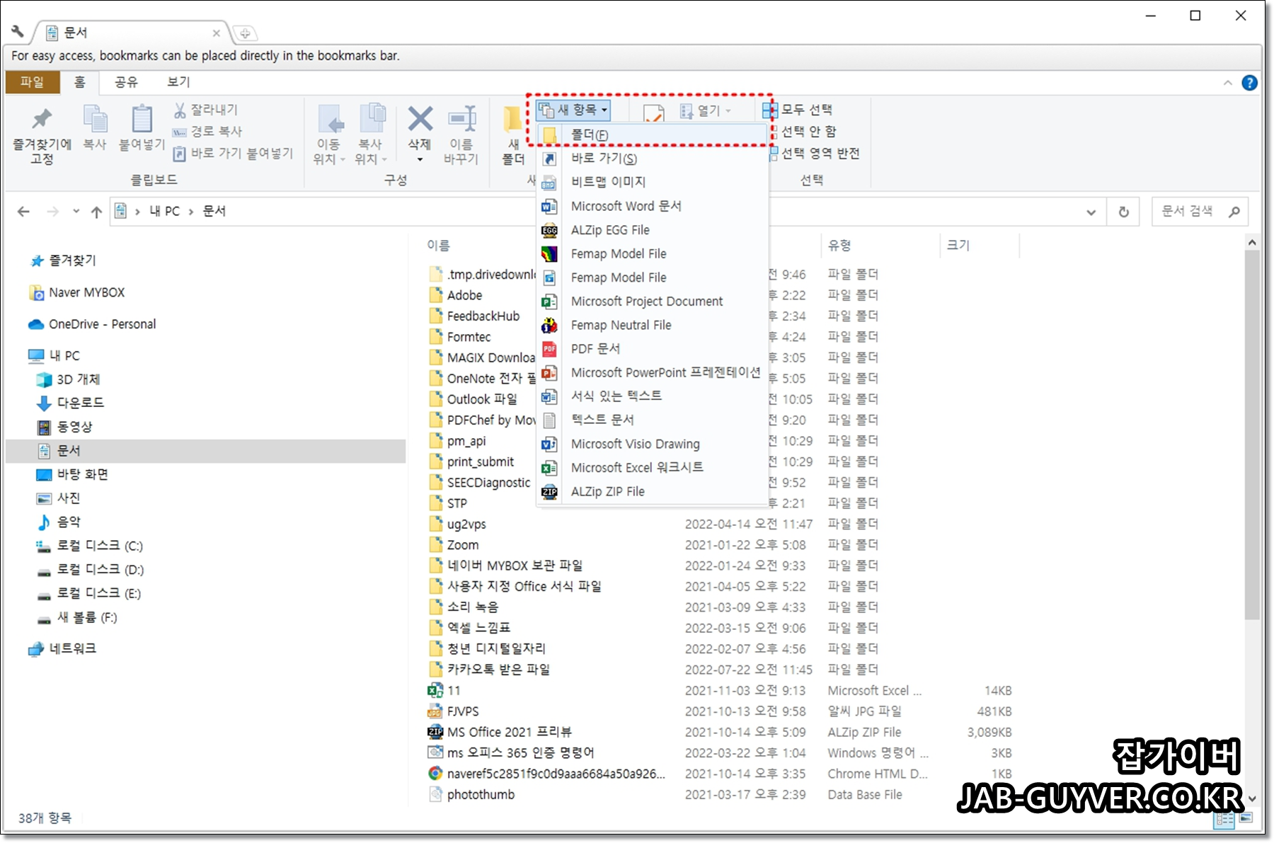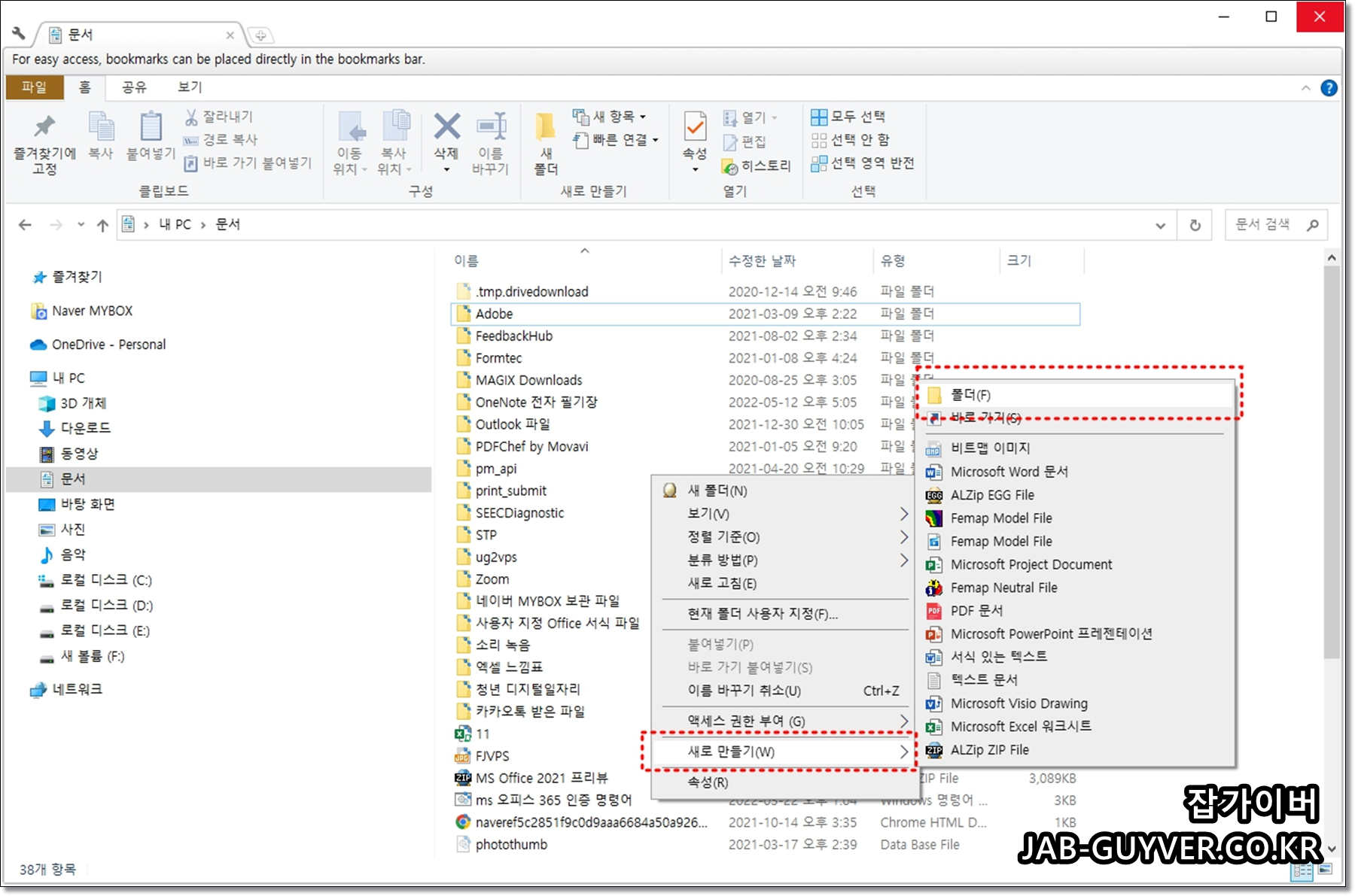 이것으로 혹시 모를 새로만들기 새폴더 기능이 꼬이지 않도록 합니다.