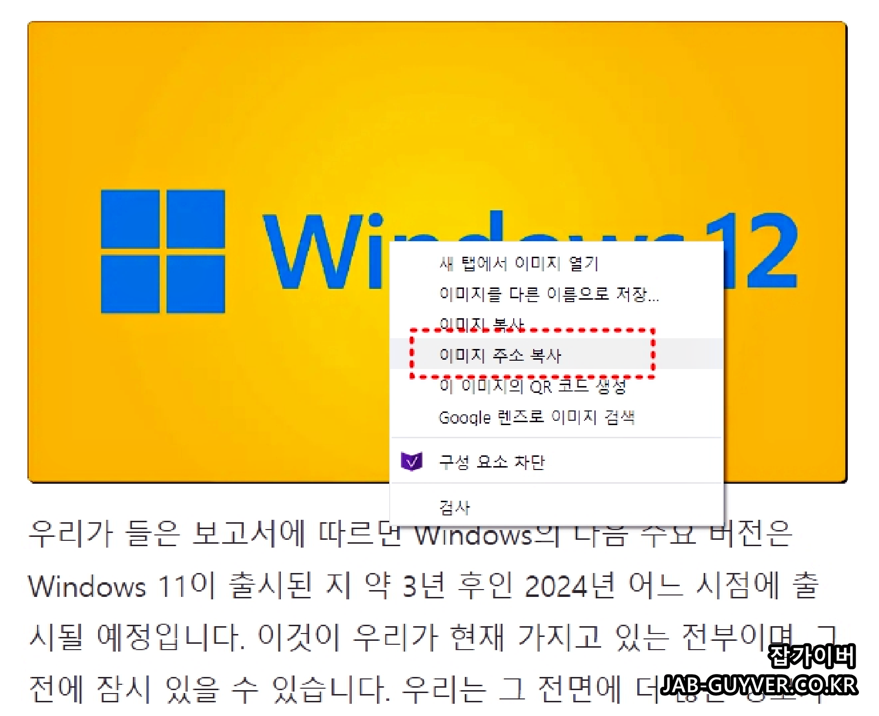 Webp 파일을 jpg로 저장하기 위해서는 해당 이미지를 우클릭 후 이미지 주소복사합니다.