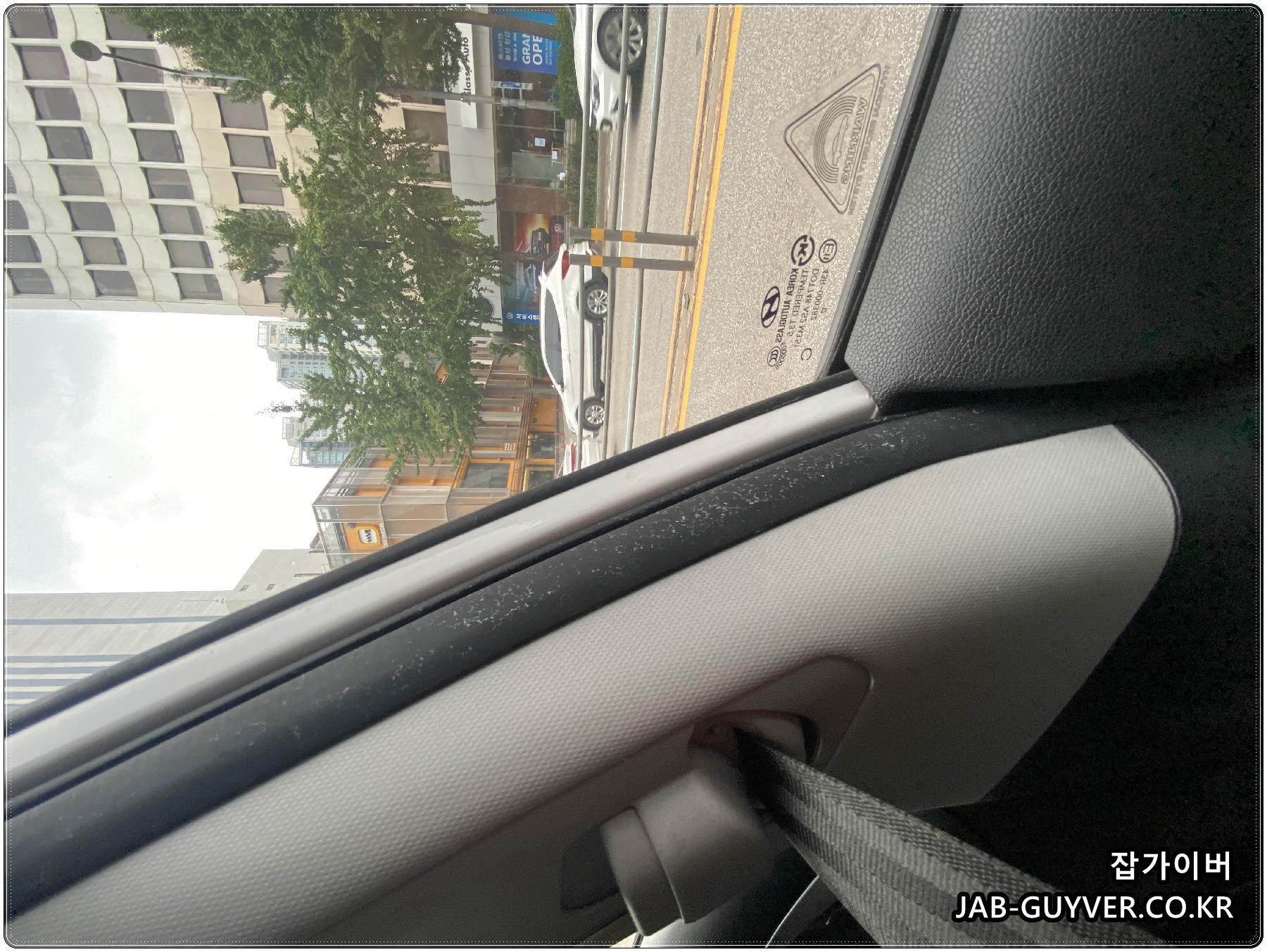 차량을 살펴보실 때 앞 뒤 양 옆 모든 벨트를 길게 쭉 빼보시면 쉽게 확인이 가능합니다. 차량이 침수되는 과정에서 벨트 안쪽에도 흙탕물과 같은 이물질들이 들어가게 됩니다