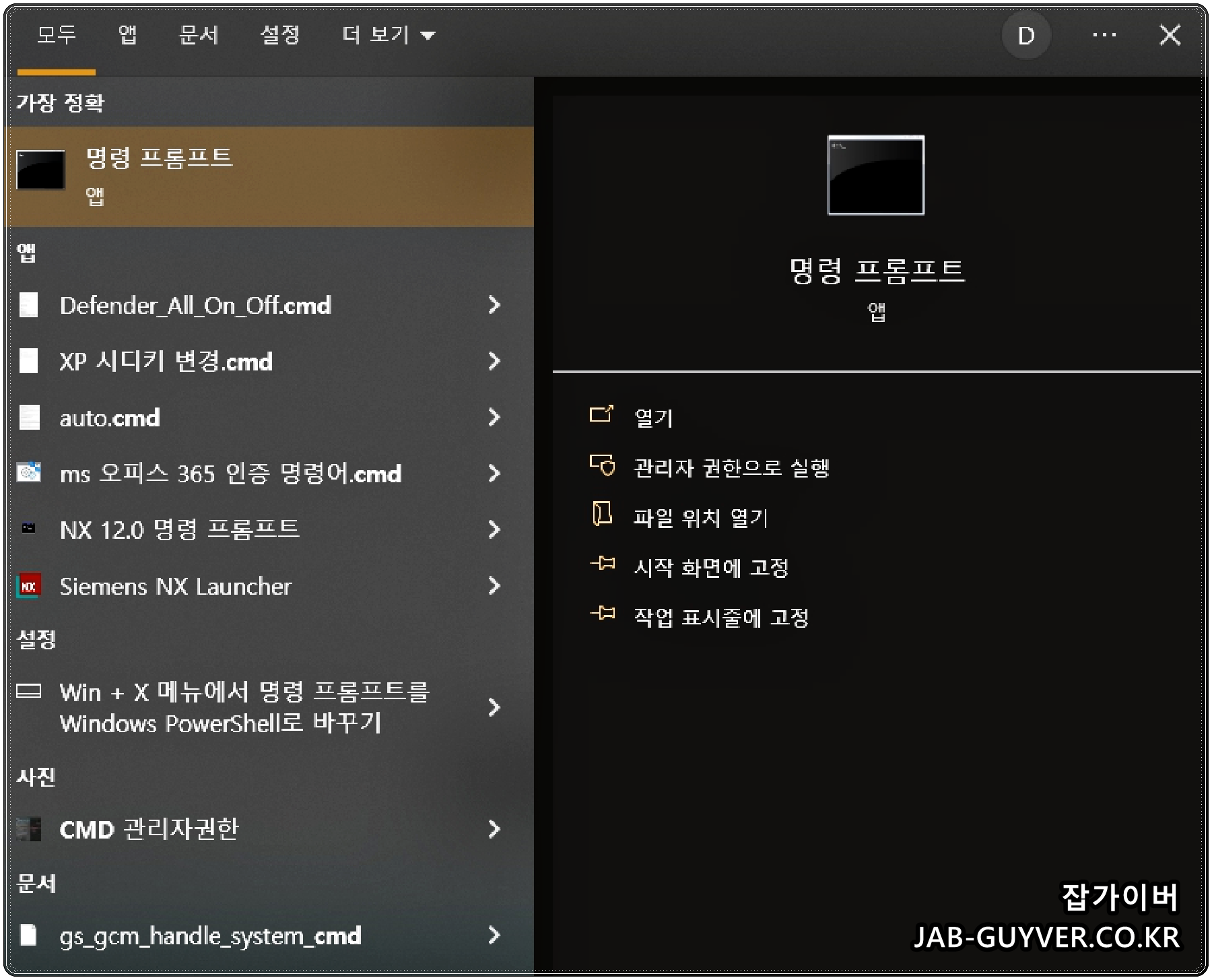 CMD 명령프롬프트를 관리자권한으로 실행 후 아래 명령어를 입력합니다.