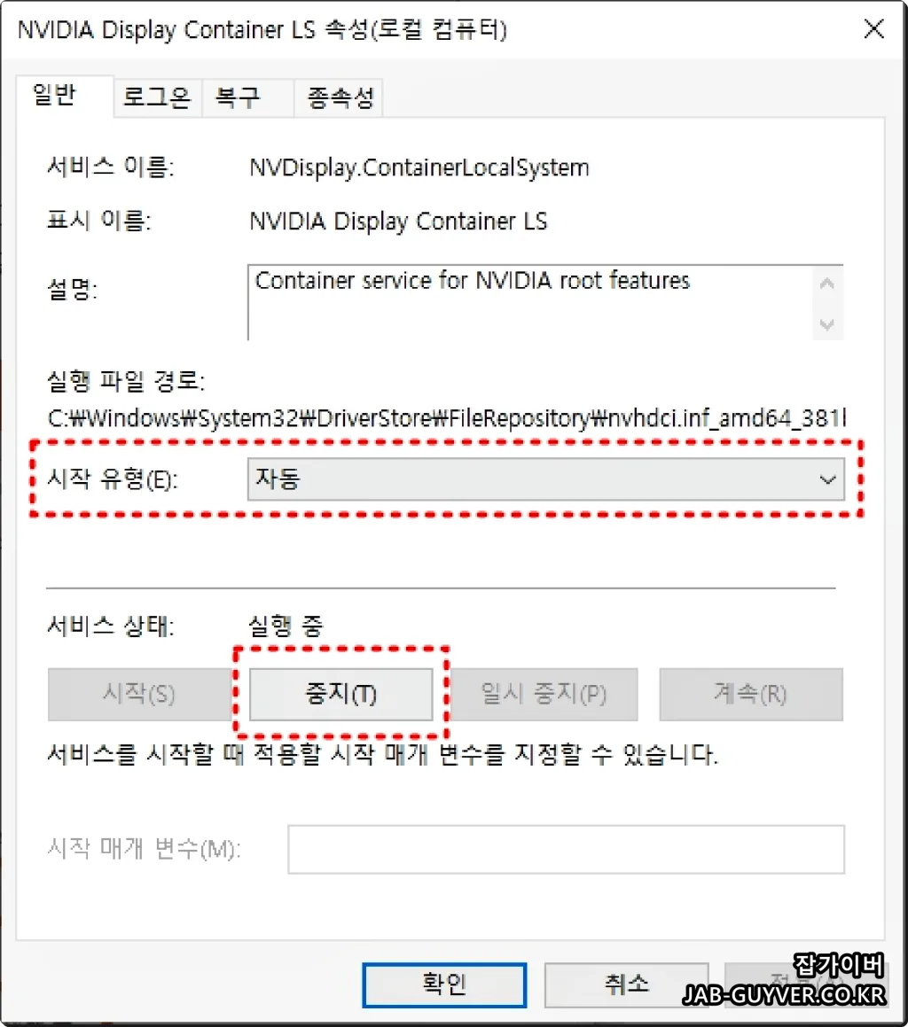 시작 유형은 자동으로 되어 있는지 함께 확인하는 것이 좋습니다.