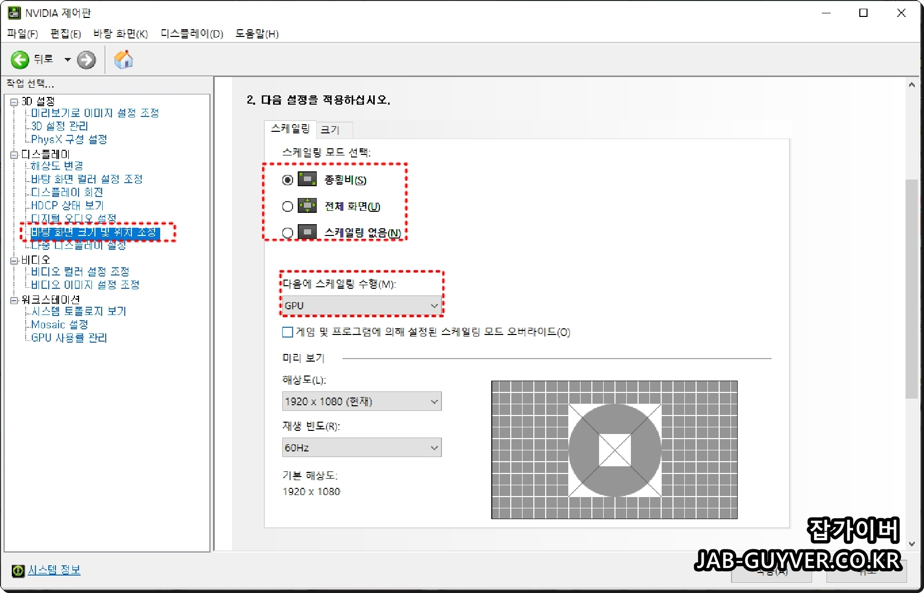 모니터 바탕화면 크기 및 종횡비 조절