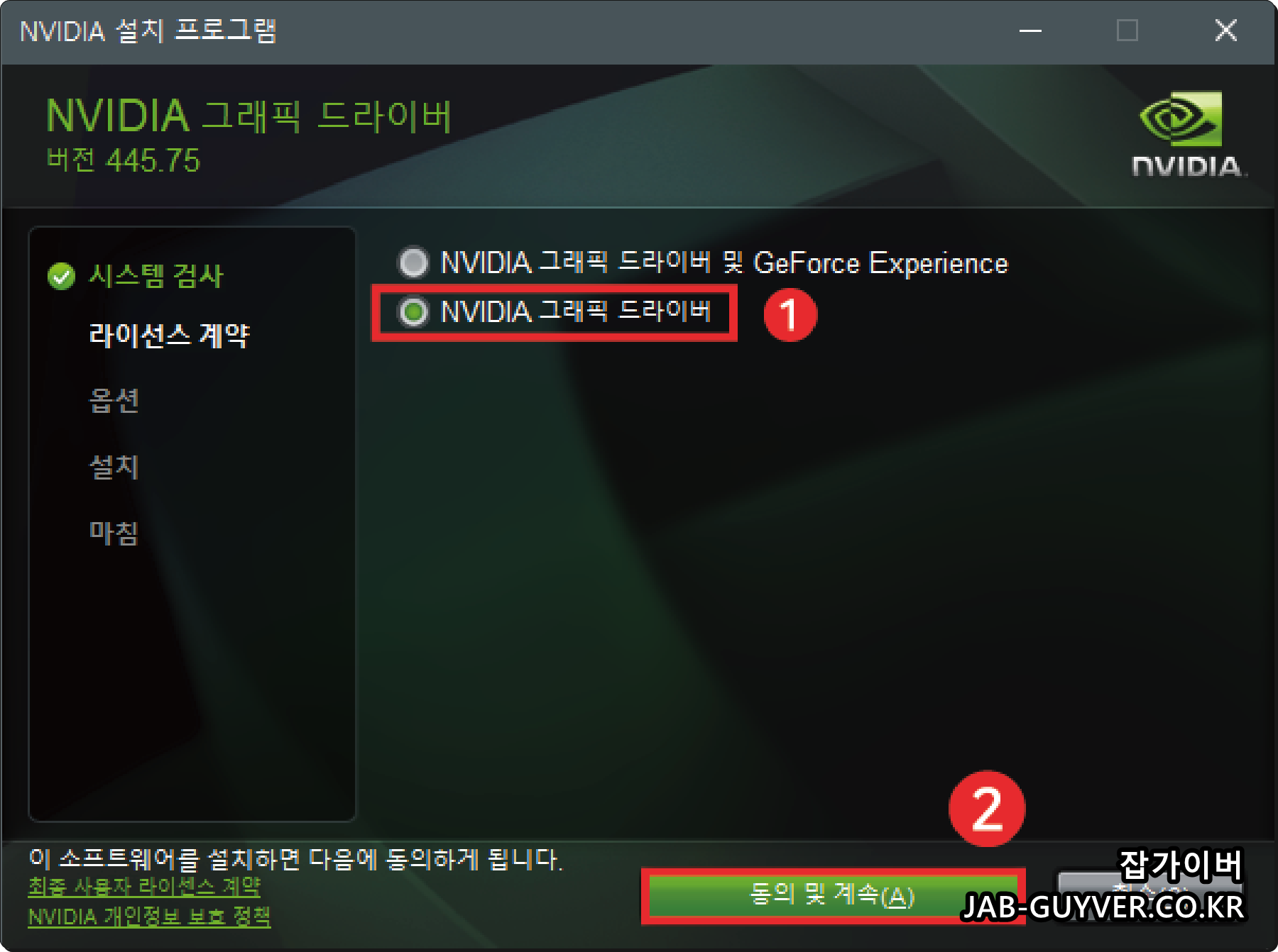 이후 설치 시 Nvidia 그래픽카드 드라이브 외에도 Geforce Experience 등이 설치되는데 필요없는 기능으로 설치 시 컴퓨터 리소스를 많이 잡아먹기 때문에 설치시 제외하고 엔비디아 그래픽카드 드라이버만 설치하느것을 추천합니다.