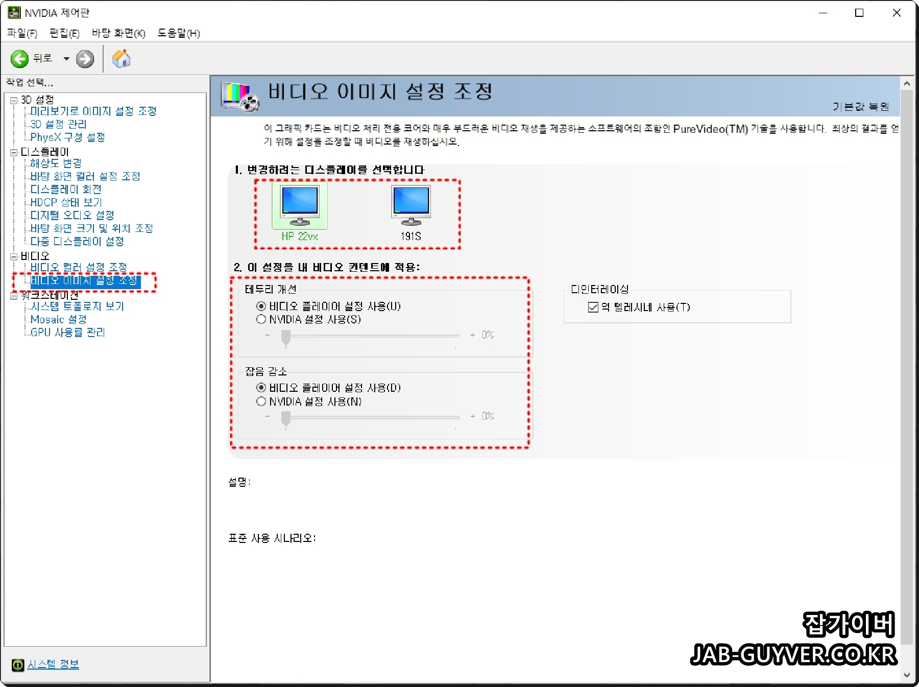 모니터 비디오 이미지 설정조정