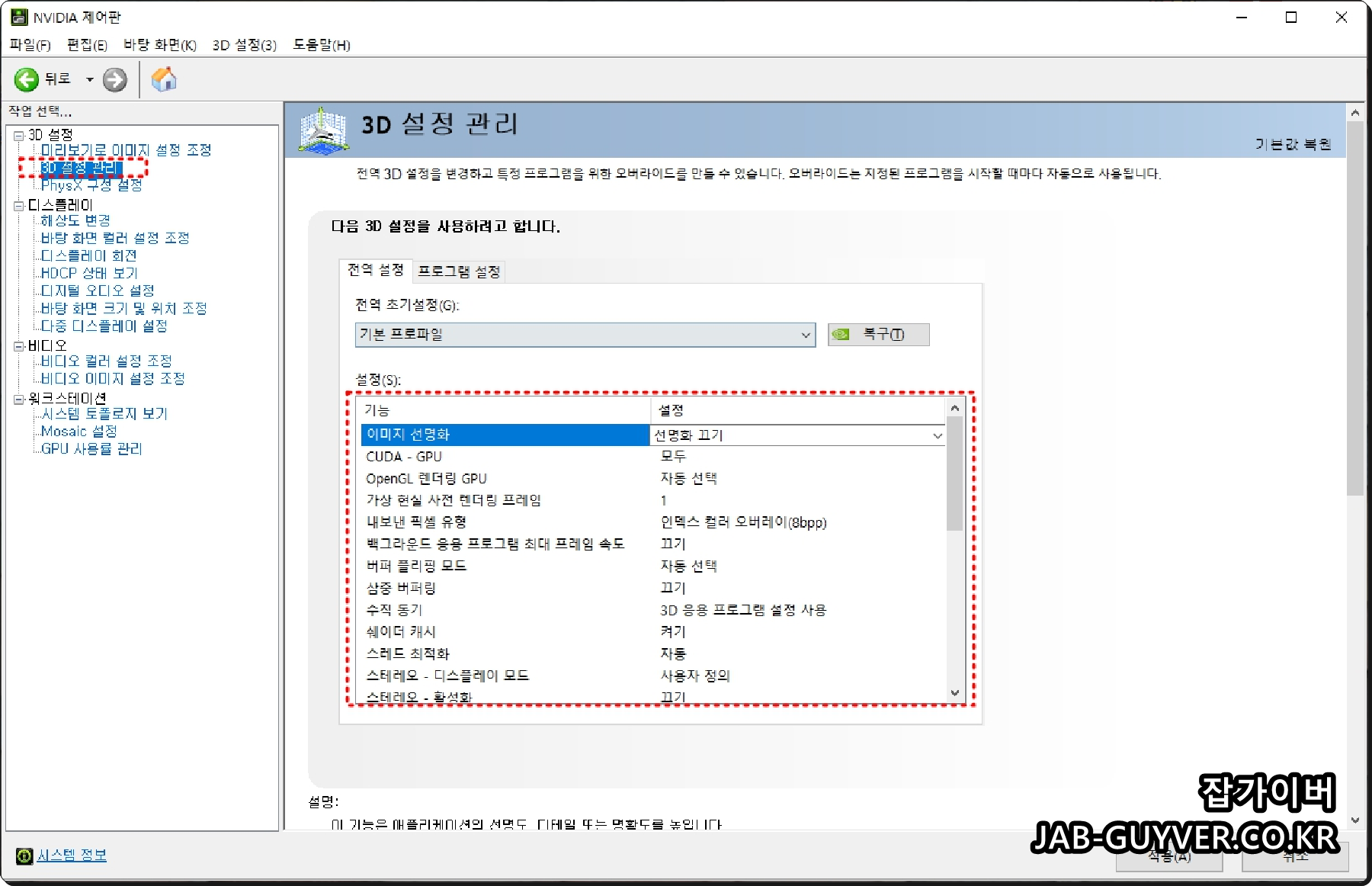 엔비디아 그래픽카드 드라이브 설치 및 Nvidia 제어판 3D게임 최적화 설정