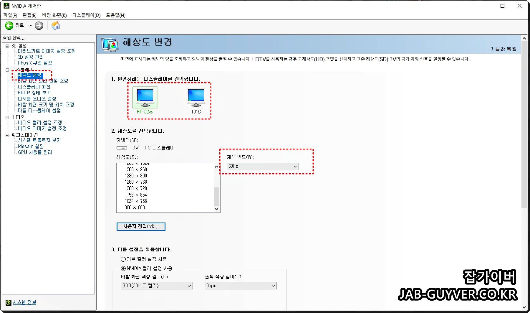 엔비디아 그래픽카드 GTX RTX - Nvidia 제어판 모니터 설정 - 노랗IT월드