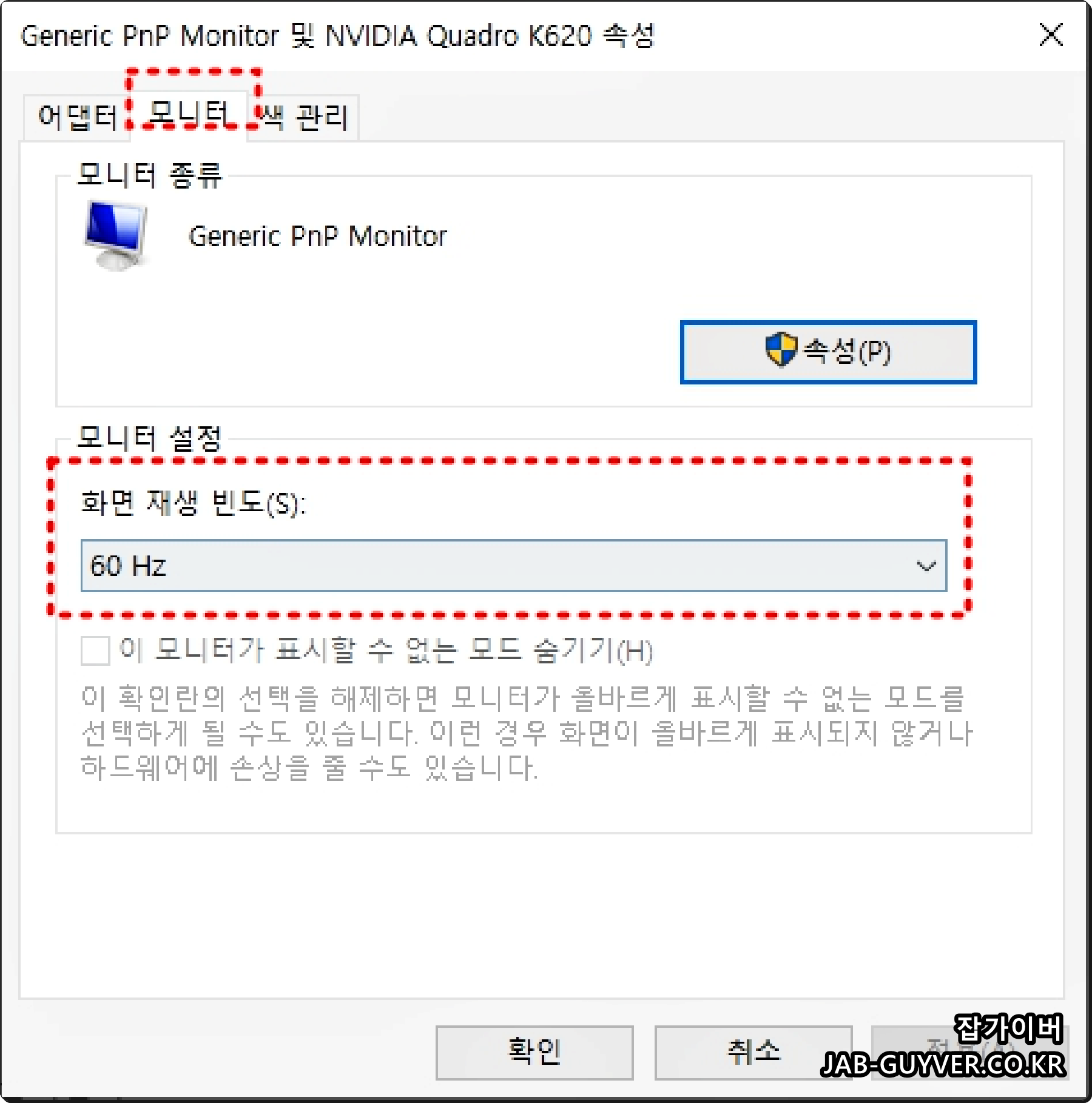 윈도우 모니터 주사율 재생빈도 60hz 90hz 120hz 144hz 240hz 변경