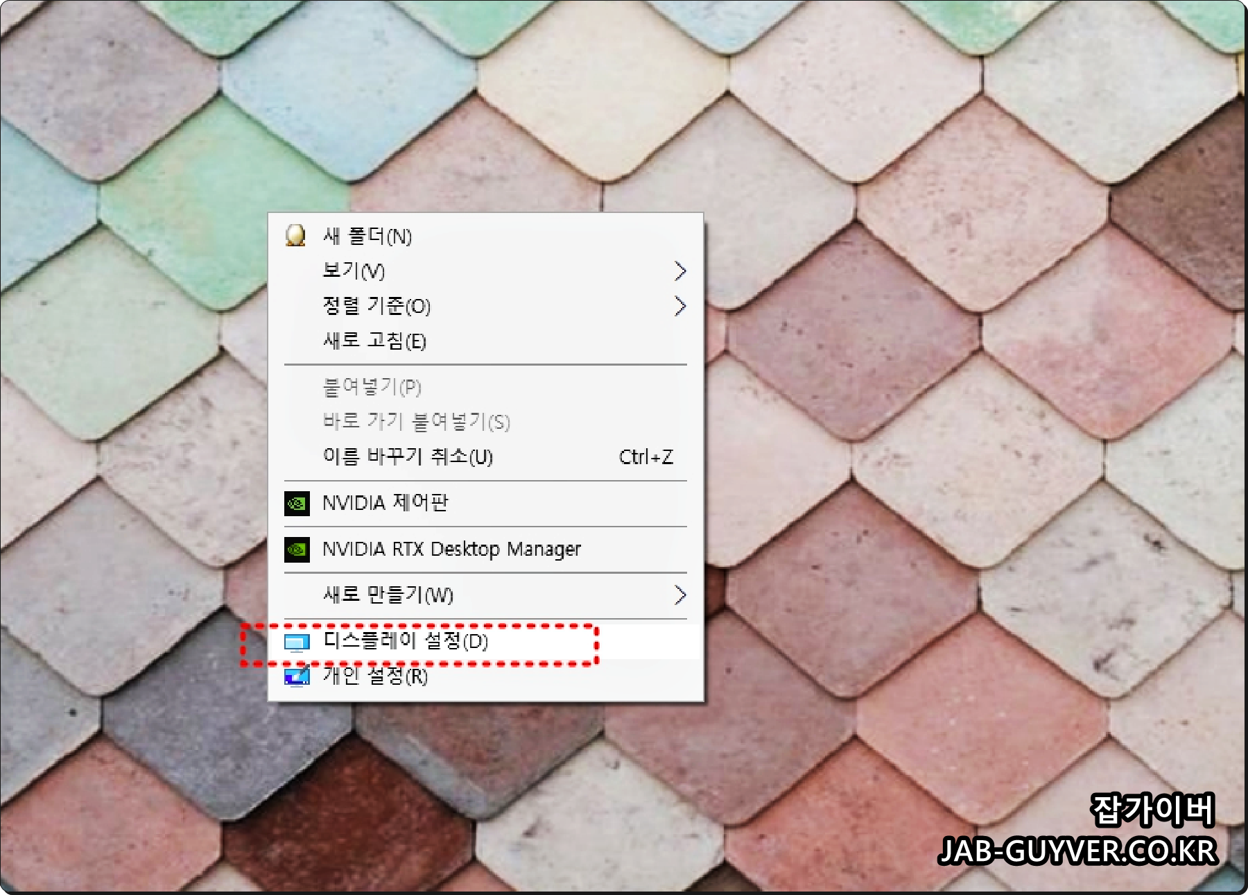 윈도우 바탕화면 빈곳에 마우스 우클릭 - 디스플레이 설정으로 들어갑니다.