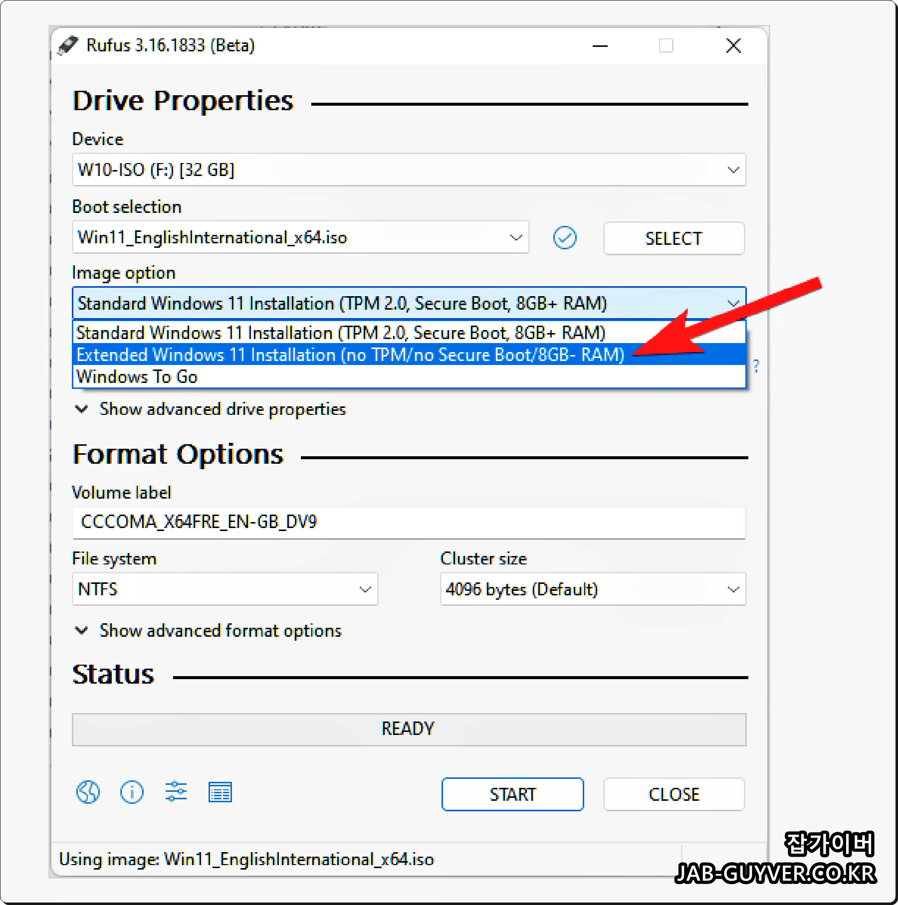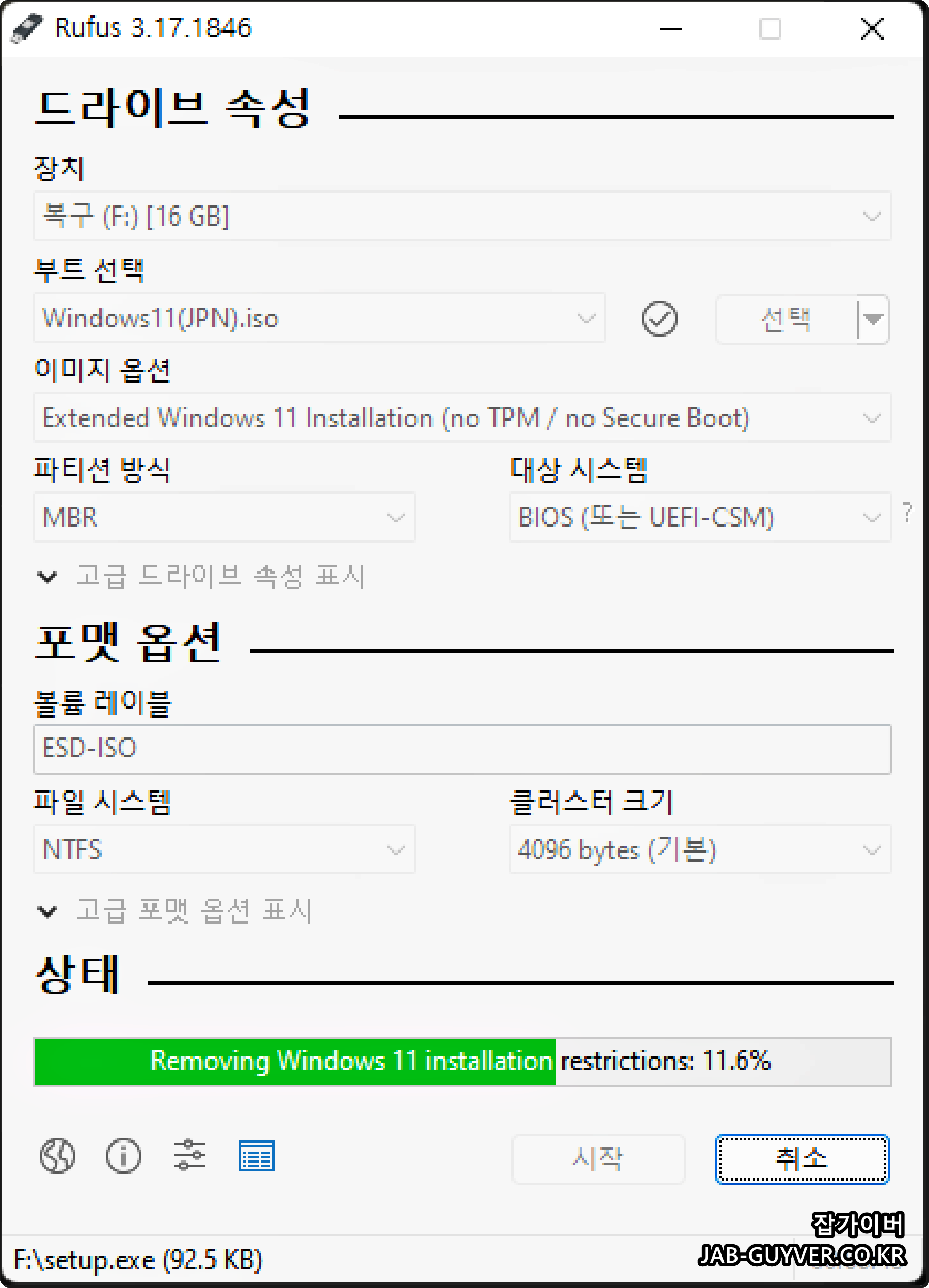 Rufus로 윈도우11 USB 만들 때(설치 검사 완화 옵션)