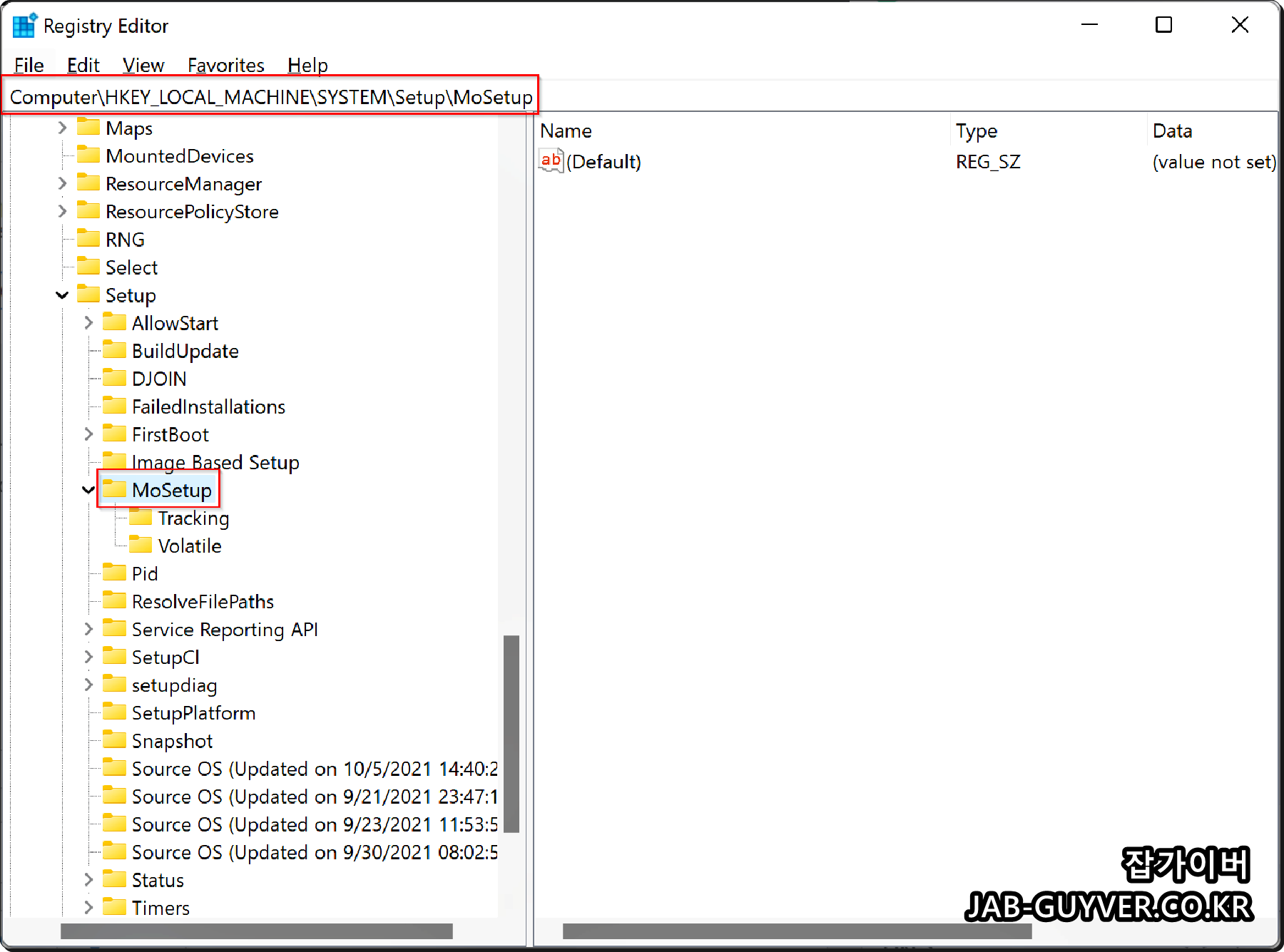 HKEY_LOCAL_MACHINE\SYSTEM\Setup\MoSetup 이동합니다.