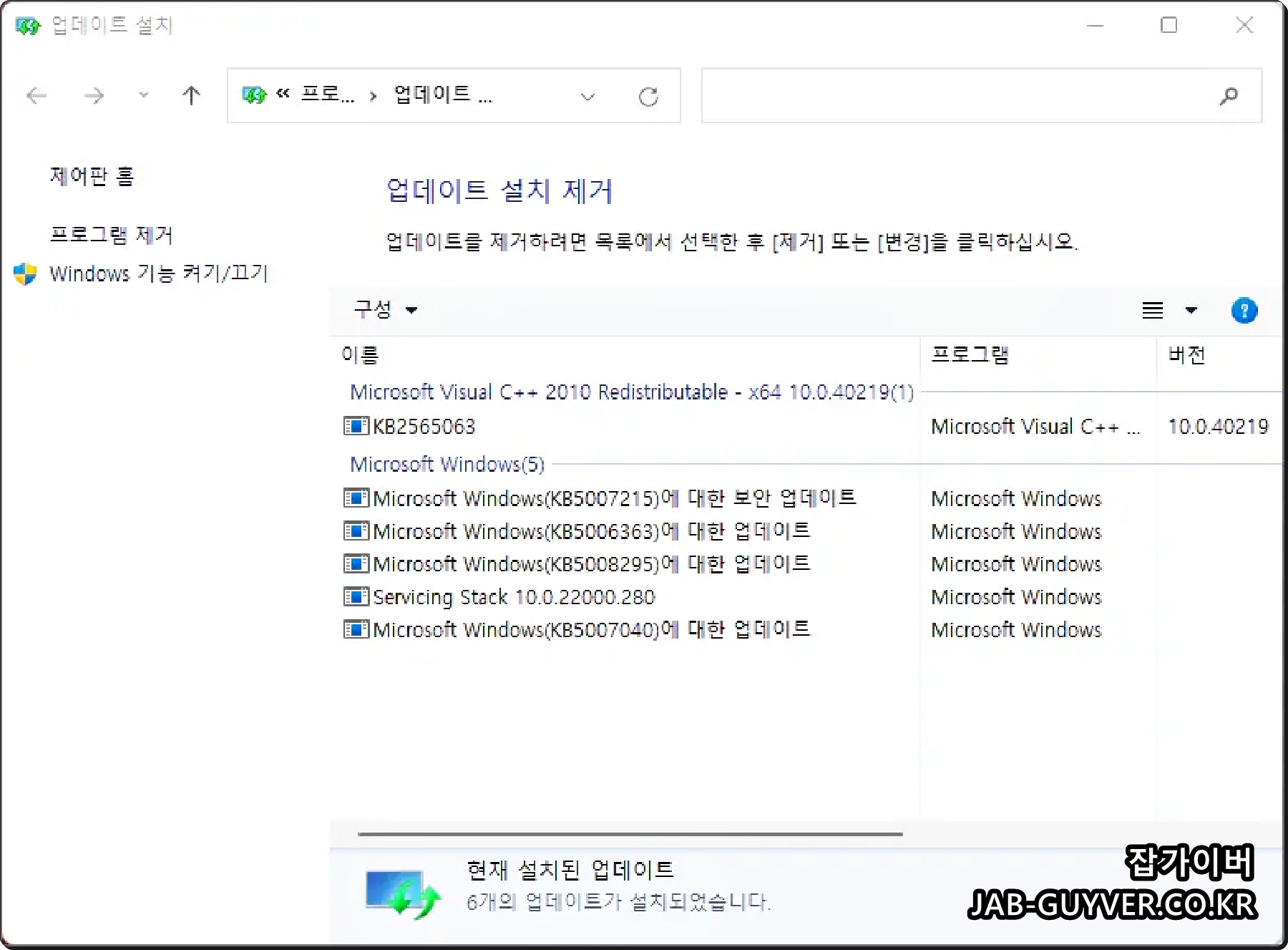 윈도우11 업데이트 제거 재설치 및 차단방법