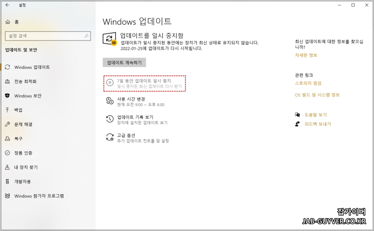 | 방법 3. 매주 Windows 11 업데이트 일시 중지; | 설정> "업데이트 및 보안"비활성화 |