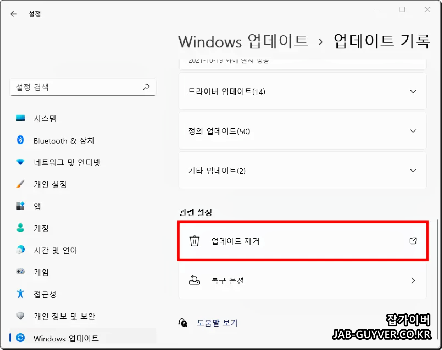 윈도우11 업데이트를 제거방법