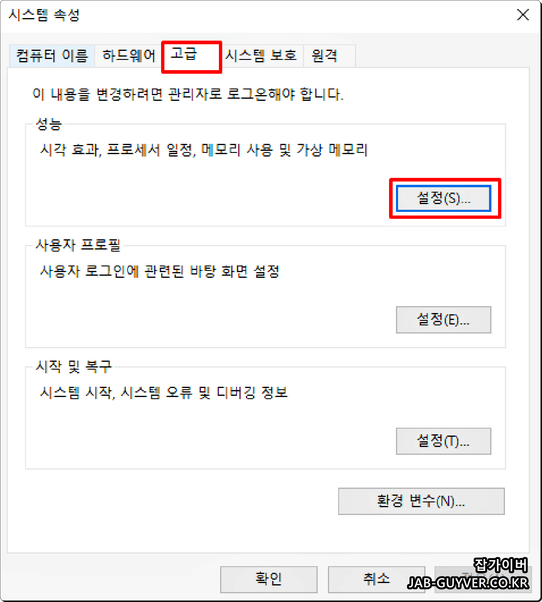 고급 시스템설정으로 들어갑니다.